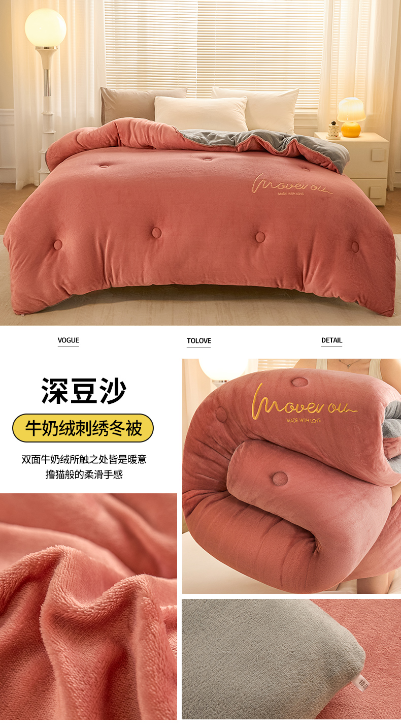 (总)暖芯家纺 2025新款加厚保暖牛奶绒冬被,宾利蓝,豆沙,粉玉,橘色,浅灰
