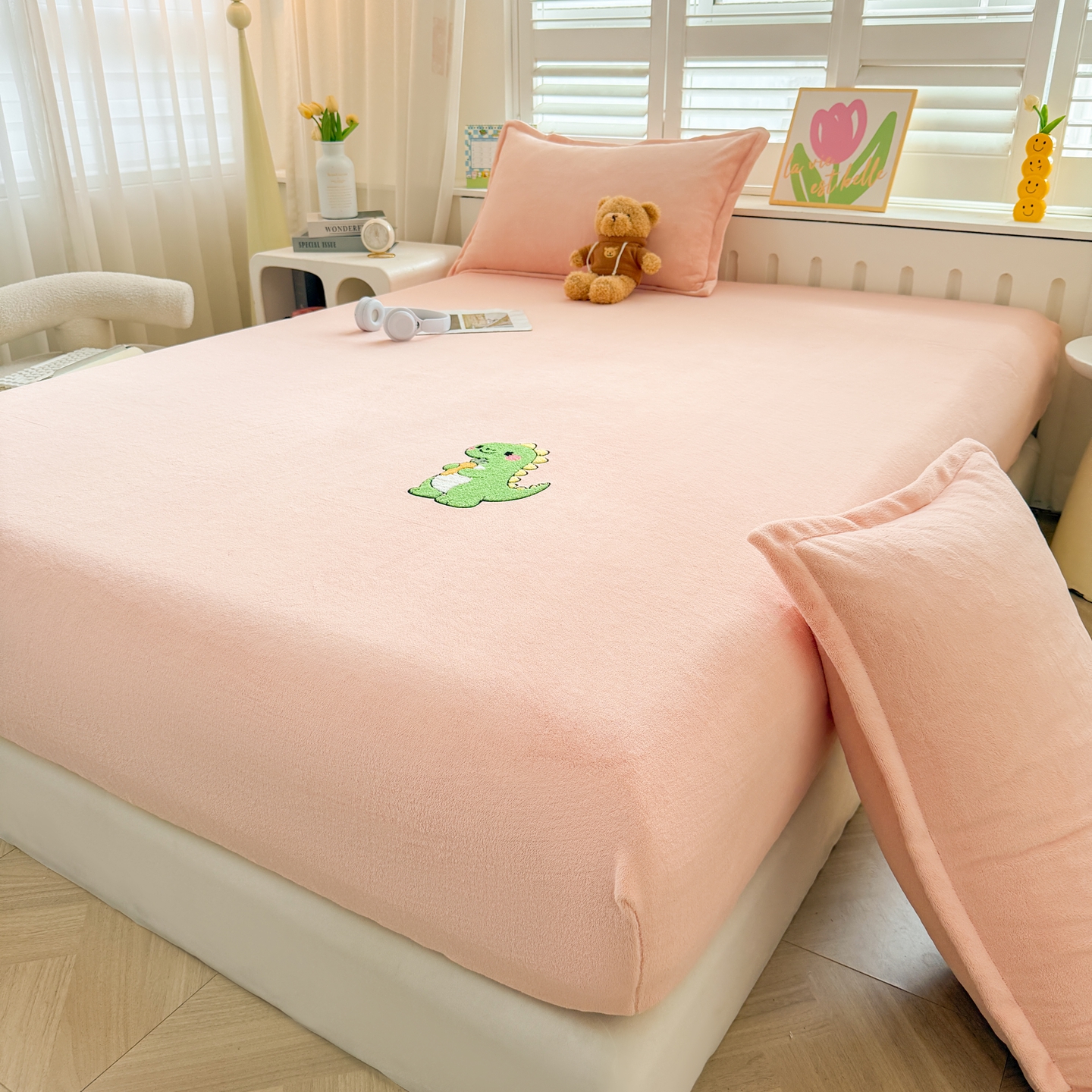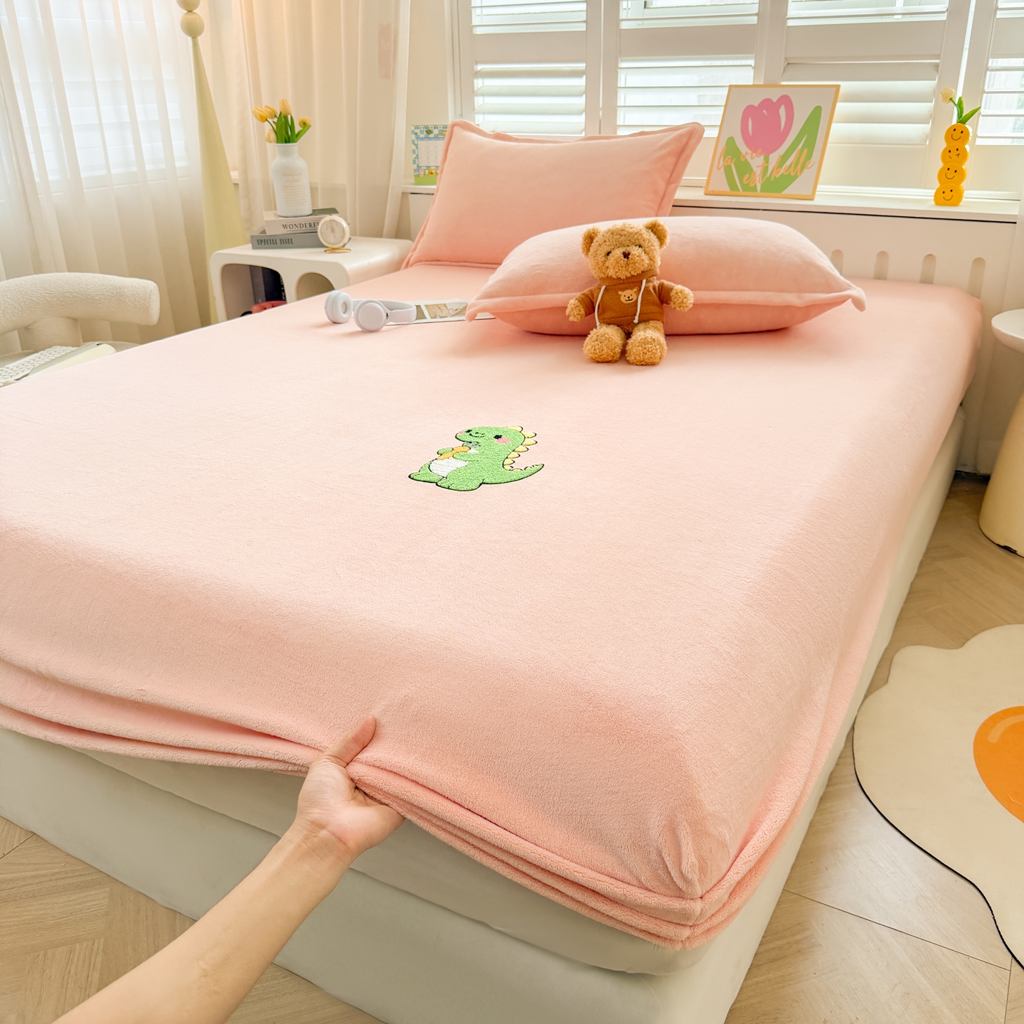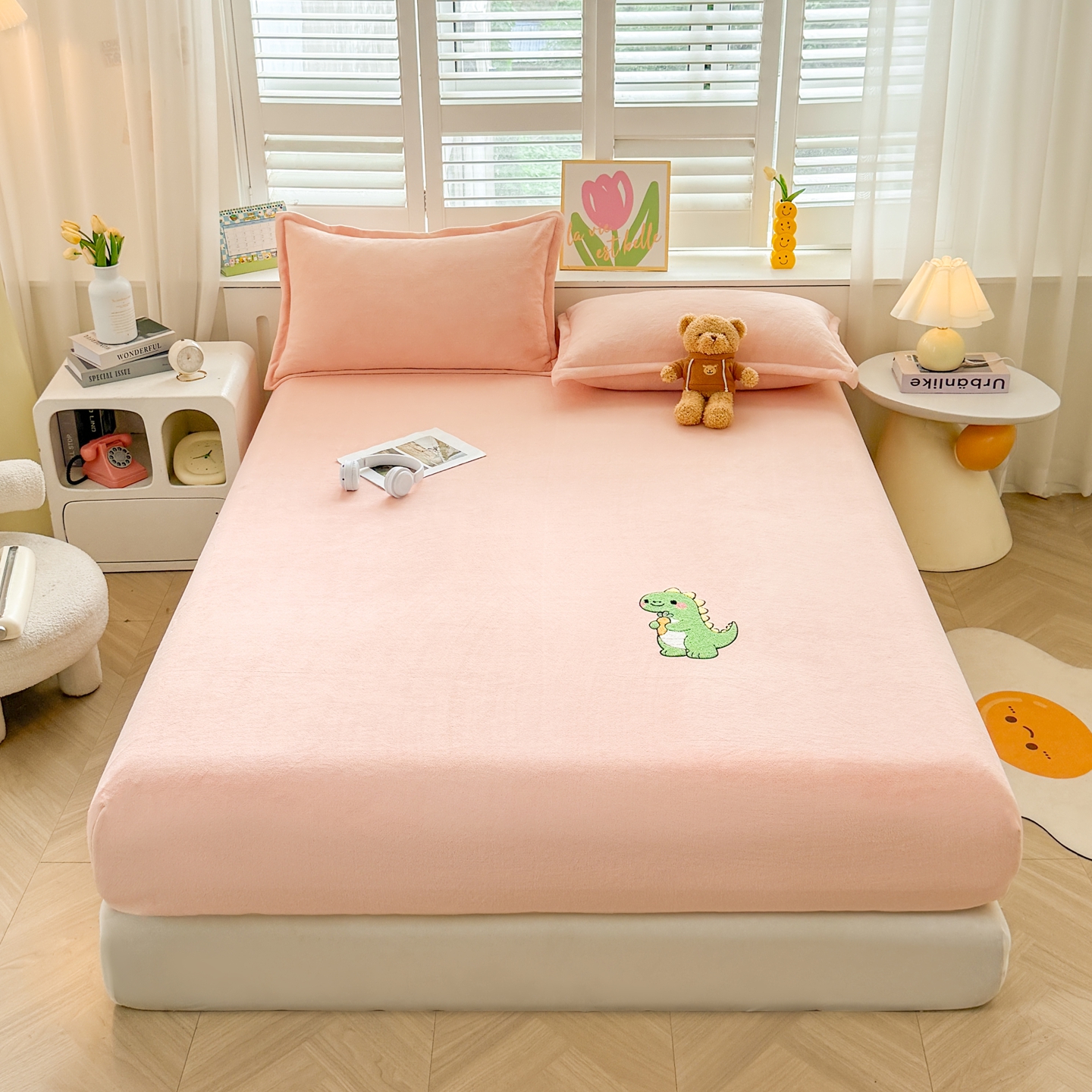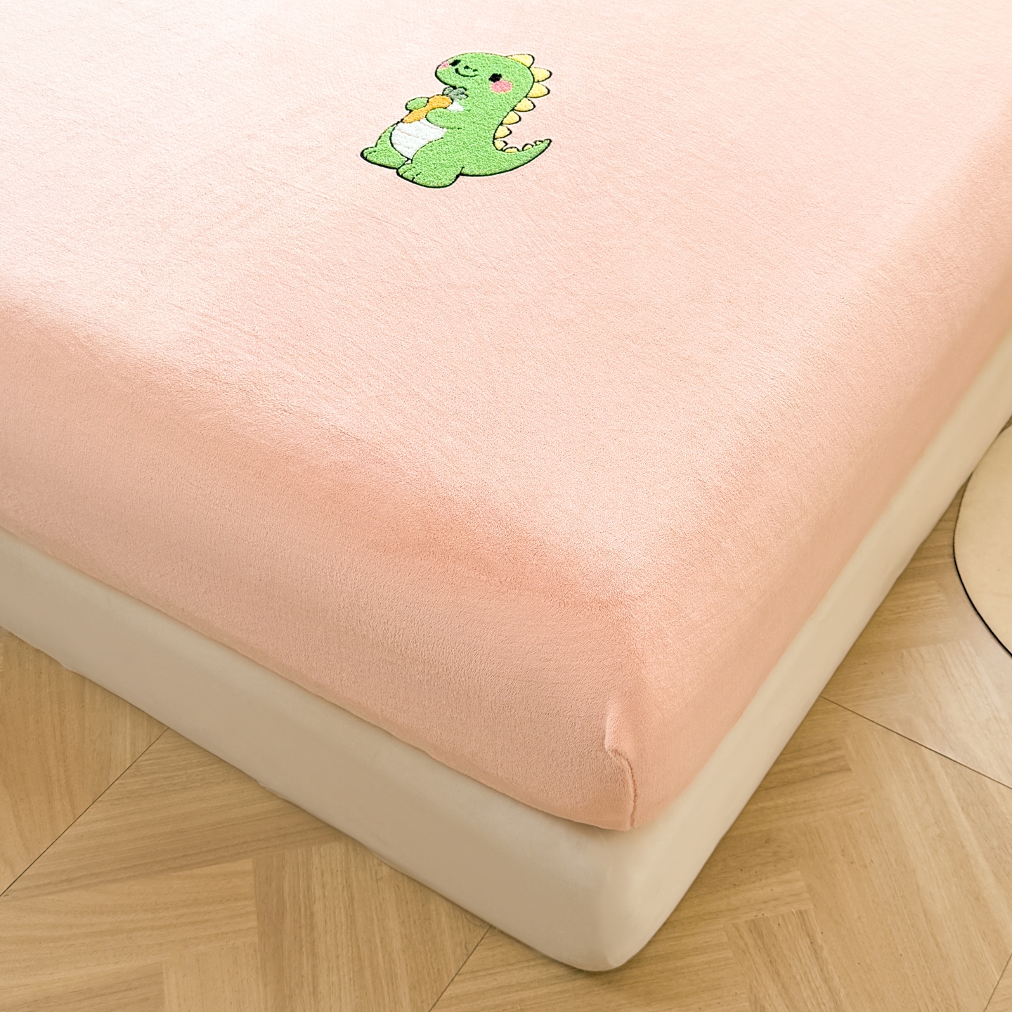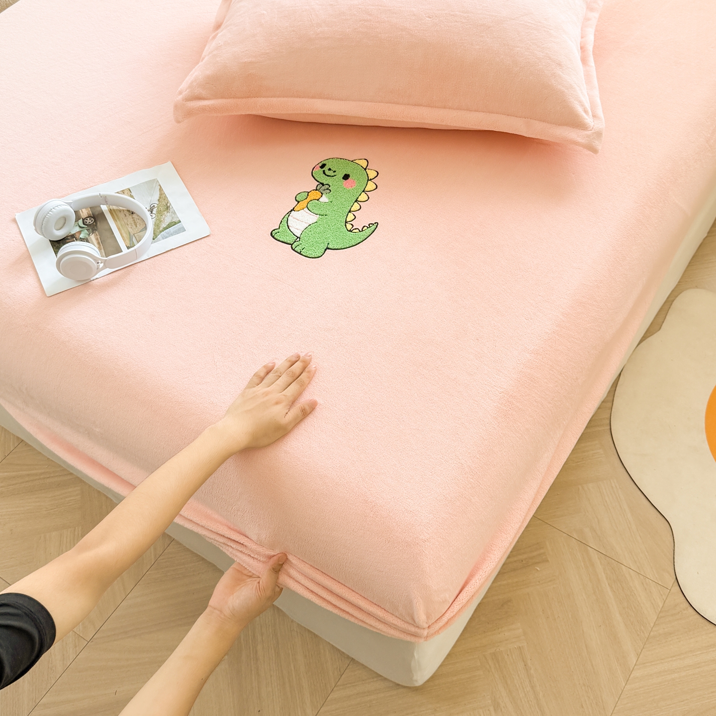 湘之帛 2025新款牛奶绒印花床笠 小恐龙-粉色