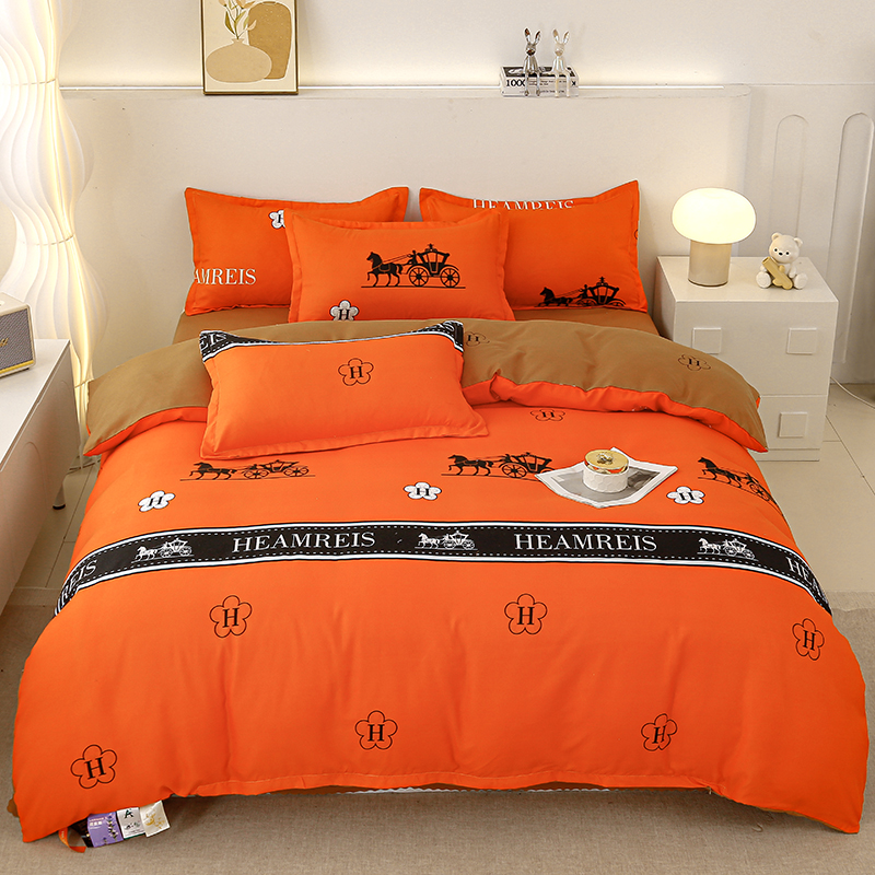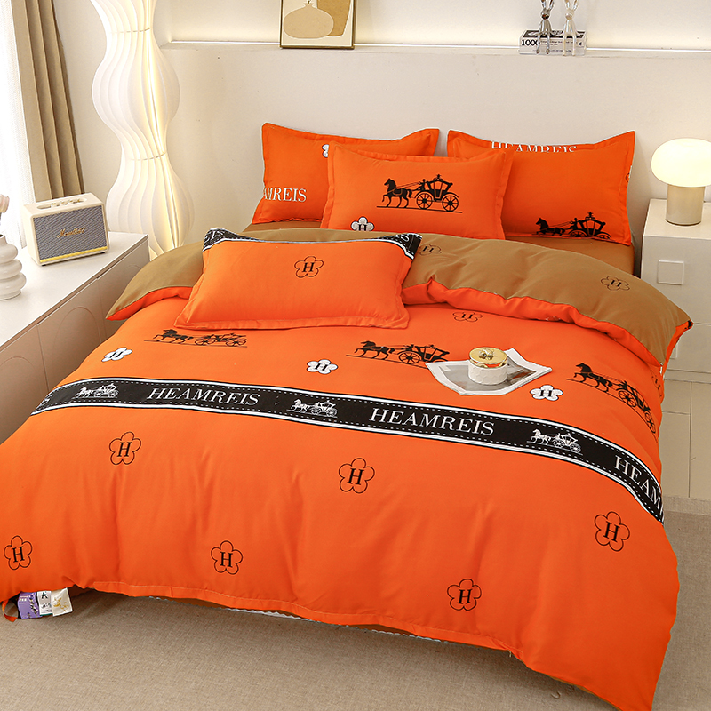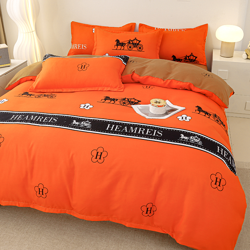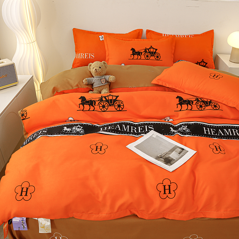 (总)2026新款床上用品加厚磨毛四件套春夏床单磨毛被套高级奢华宿舍三件套欧洲站,黑白迪,L灰,爱马橙,卡其酷