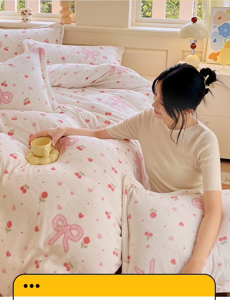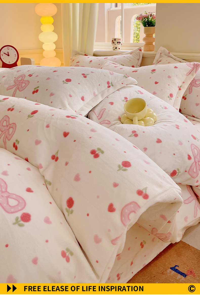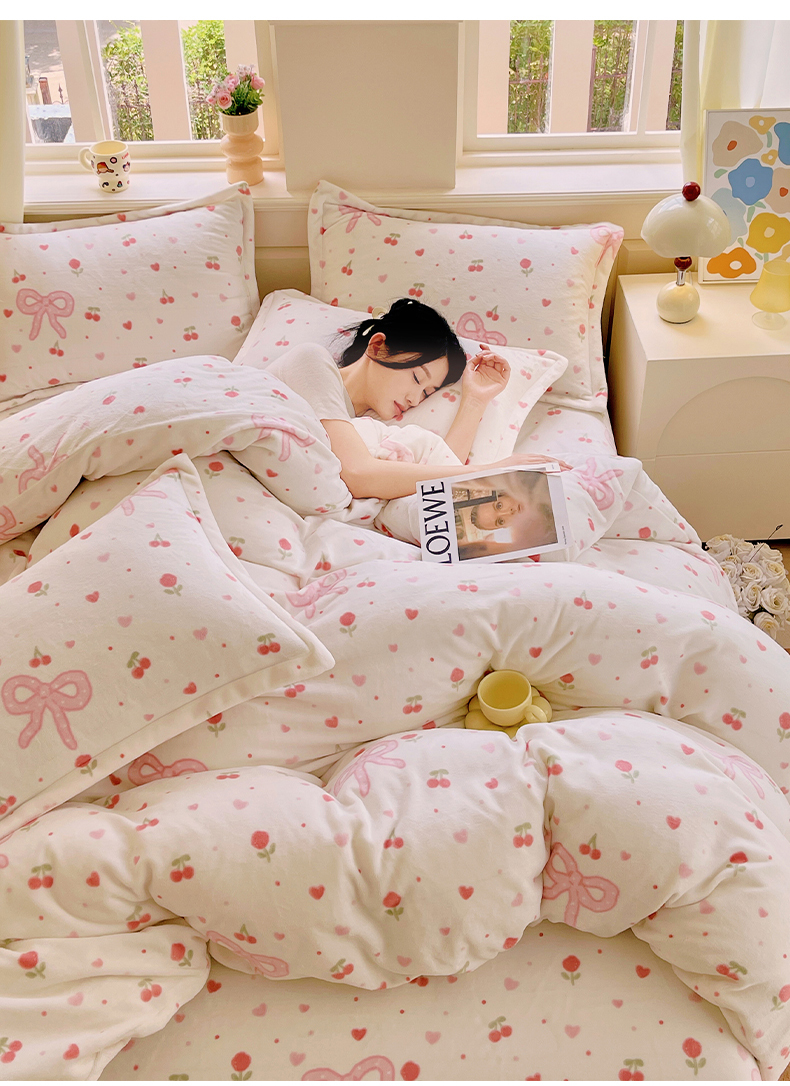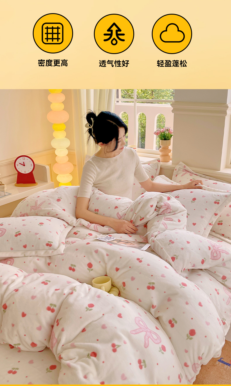 当前位置: 91家纺网 > 商品网购 > 床品套件 > 四件套 > 牛奶绒四件套 > 凯儿2025加厚A类印花牛奶绒单品四件套 樱桃结语