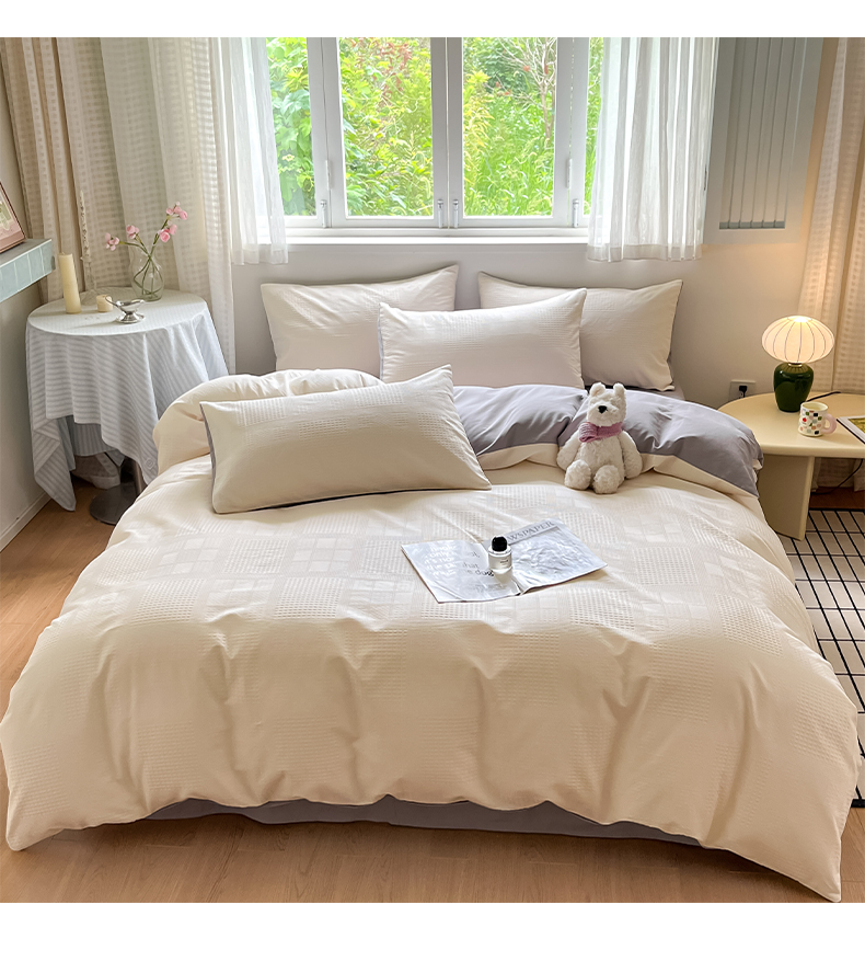 当前位置: 91家纺网 > 商品网购 > 床品套件 > 四件套 > 磨毛活性四件套 > 言一 2025秋冬新品A类60S新疆长绒棉纯棉陶瓷轻磨毛四件套提花全棉床单被套不掉毛2 米月白+山灰