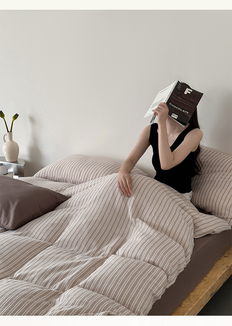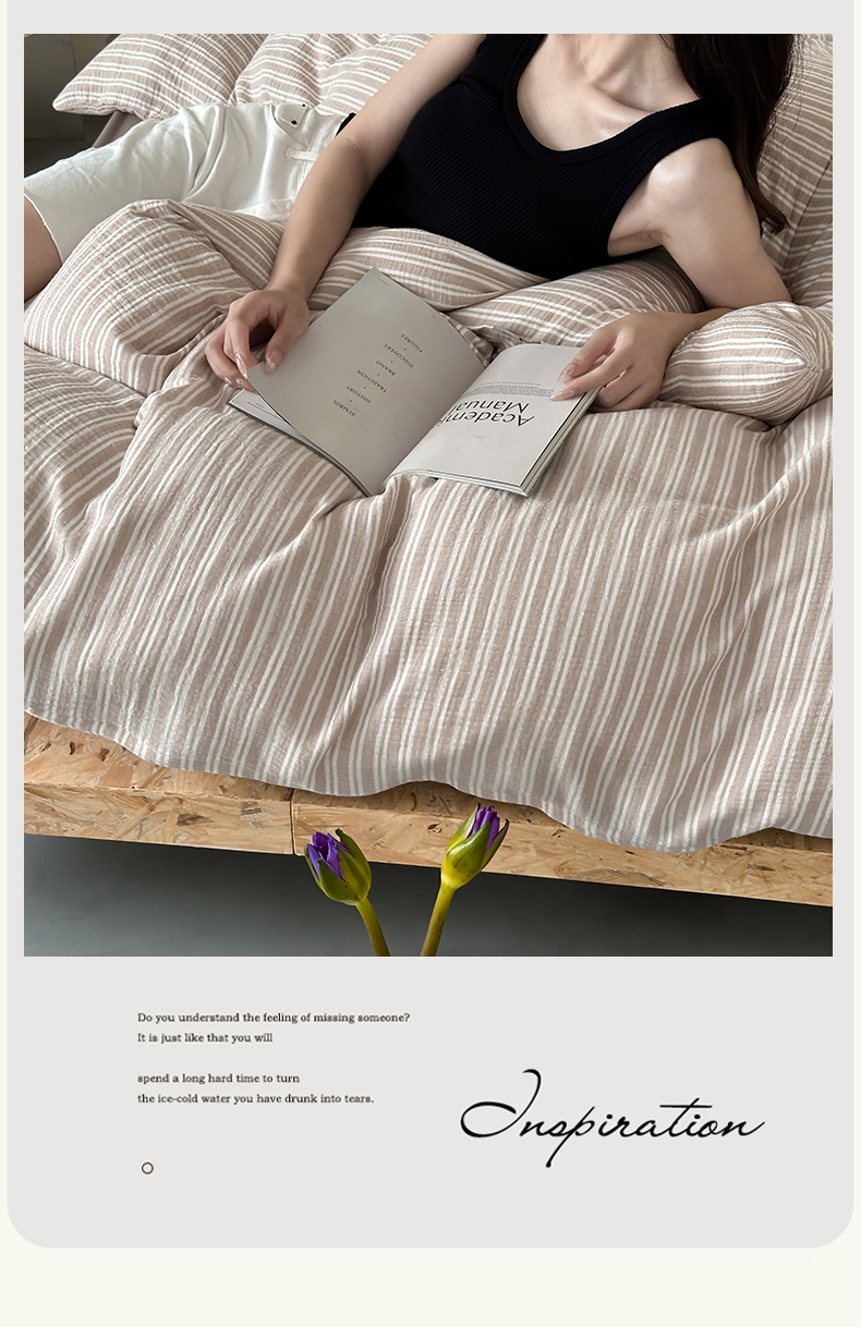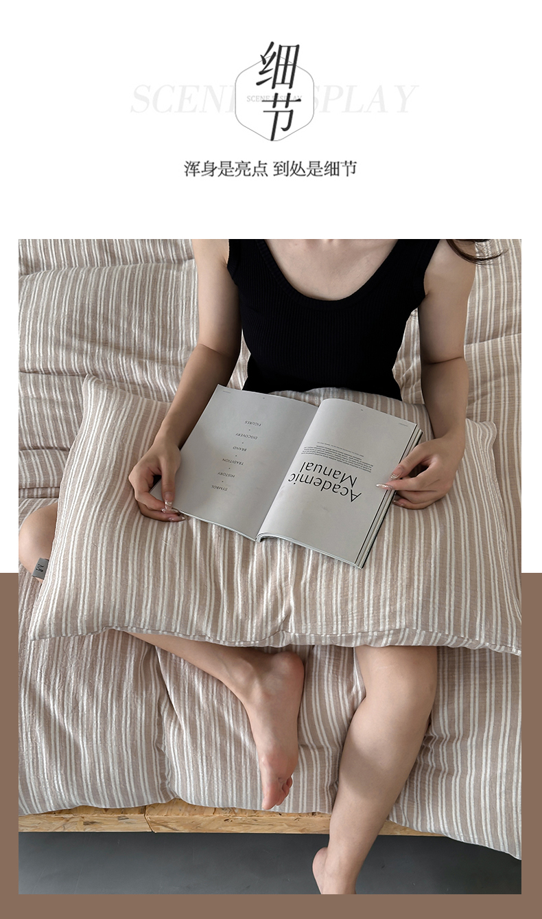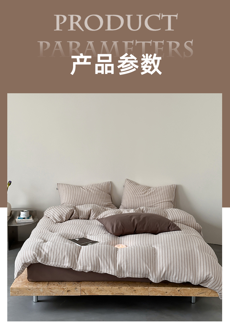 (总)玛奇朵 2025新款棉麻色织条纹系列四件套-南坪晚风,南坪晚风-粉色床单,南坪晚风-咖色床单