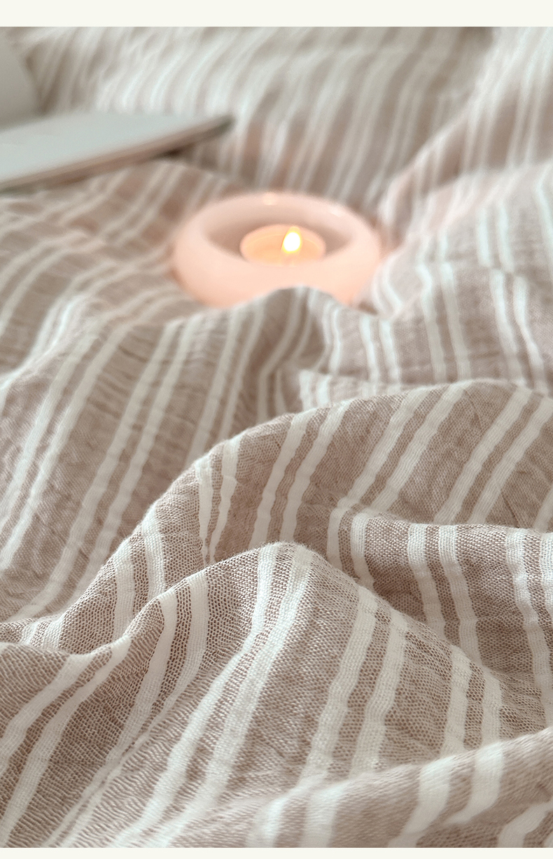 (总)玛奇朵 2024新品简约色织中古条纹双层皱皱纱四件套
