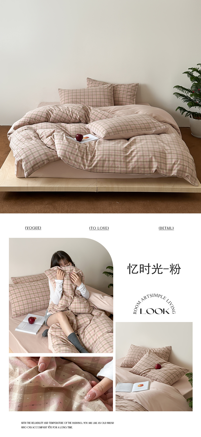 (总)玛奇朵 2025新款棉麻色织条纹系列四件套-南坪晚风,南坪晚风-粉色床单,南坪晚风-咖色床单
