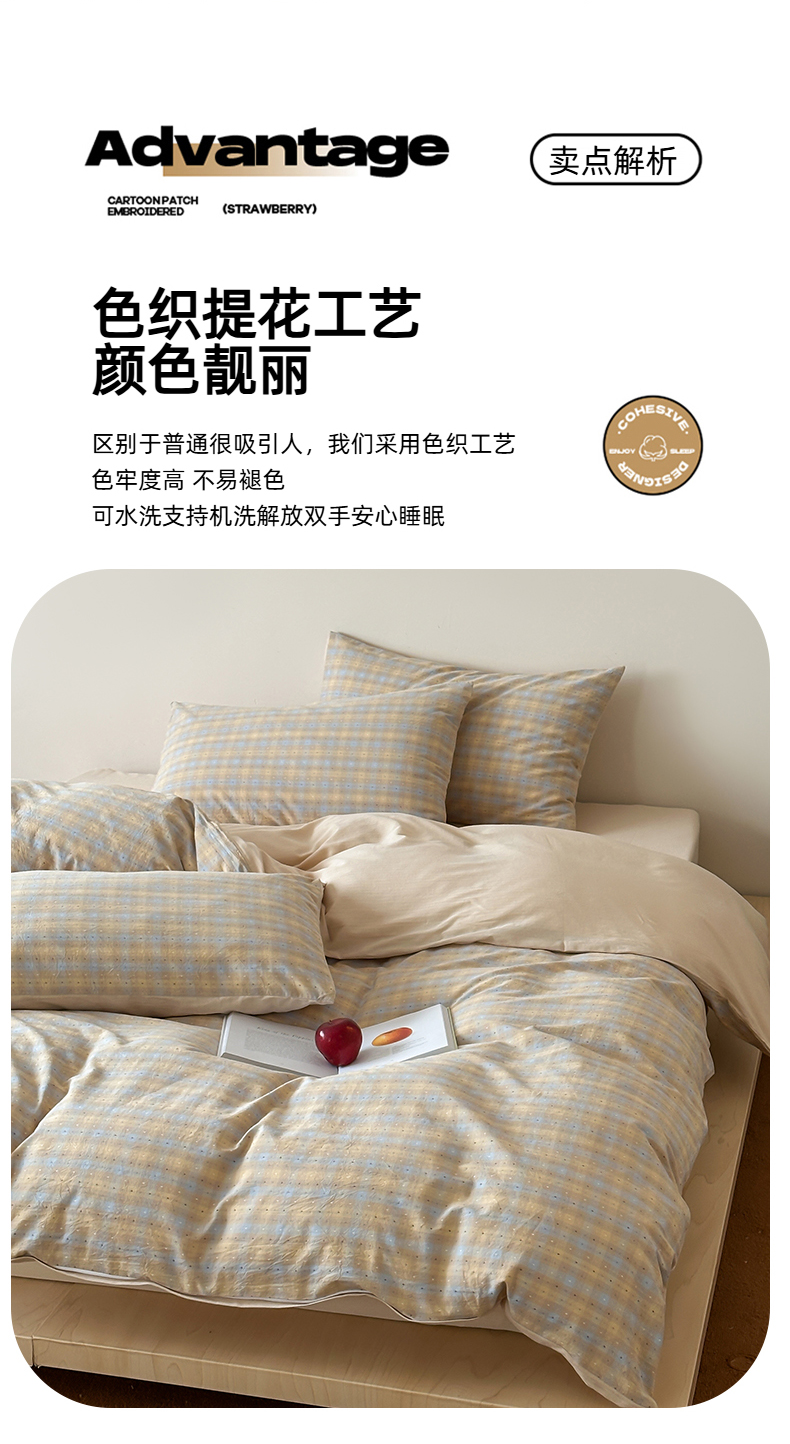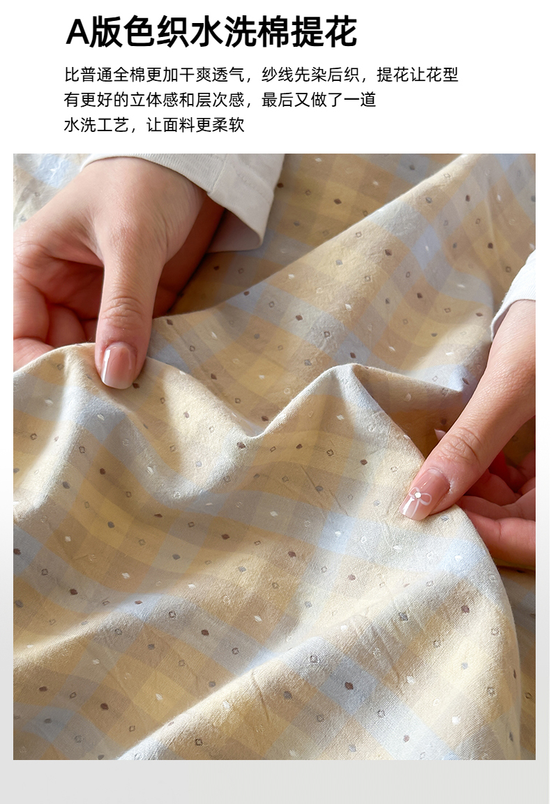 商品名称:玛奇朵 2025新品文艺复古全棉色织水洗棉提花四件套-忆时光 忆时光-卡其