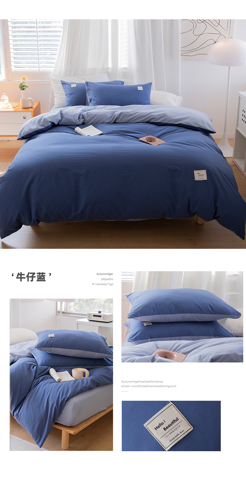 (总)贝尔 PELLHOME 全棉100纯色双拼水洗棉日式简约无印良品四件套春节不打烊(可抖音代发)