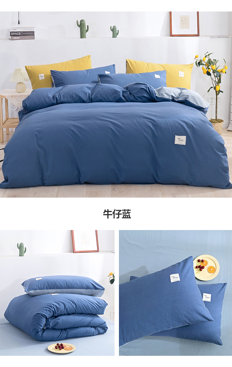 商品名称:贝尔 PELLHOME 全棉纯棉水洗棉四件套1.5m1.8m纯色北欧风简约(可抖音代发) 牛仔蓝