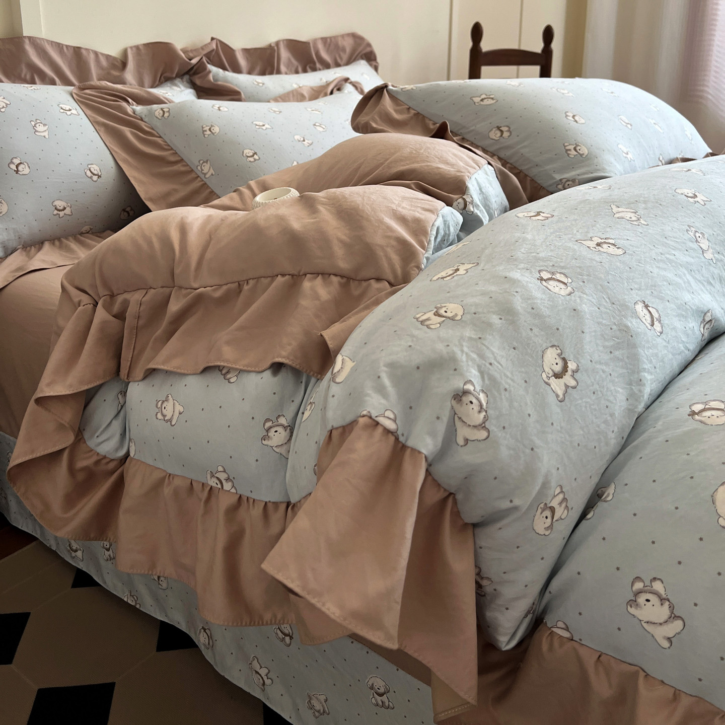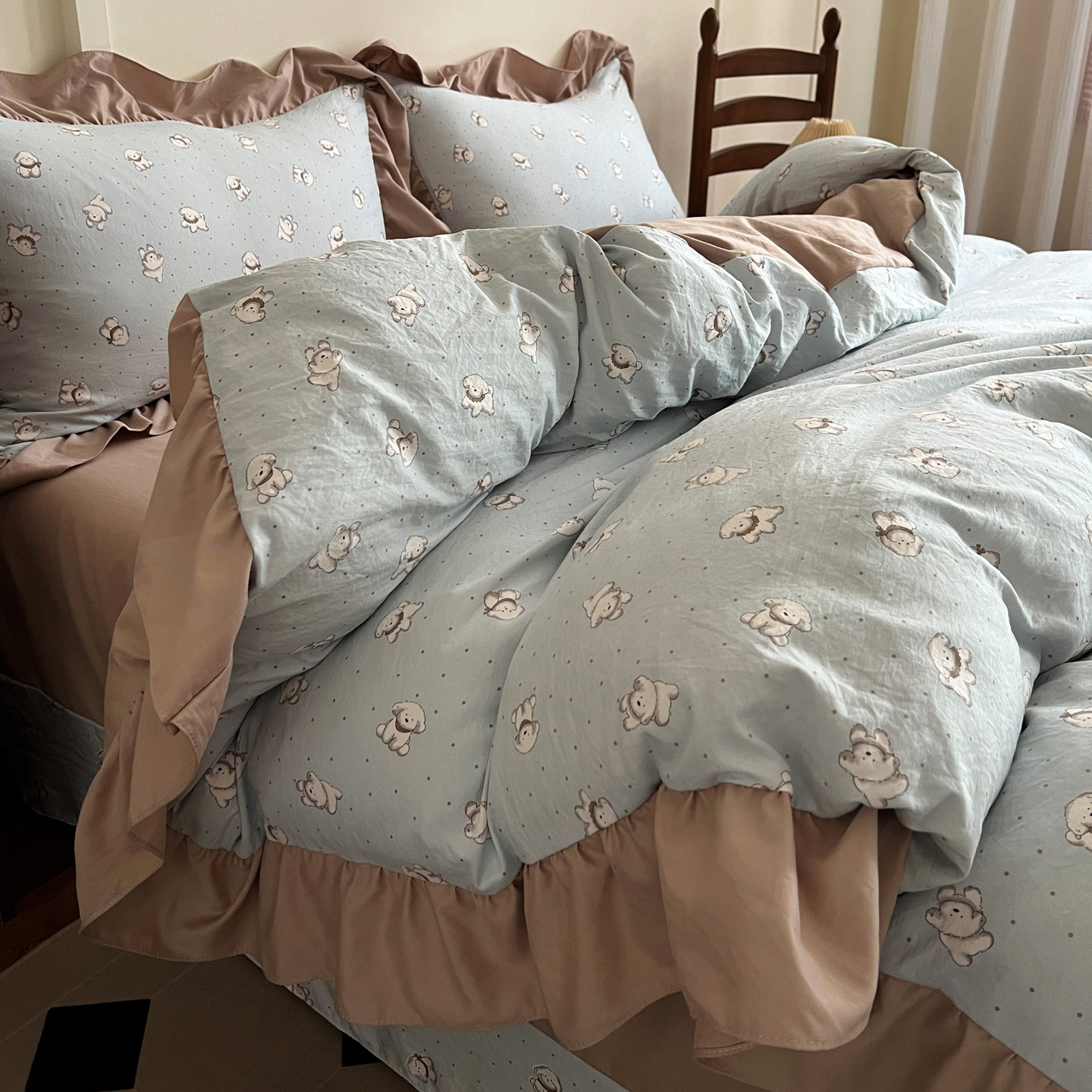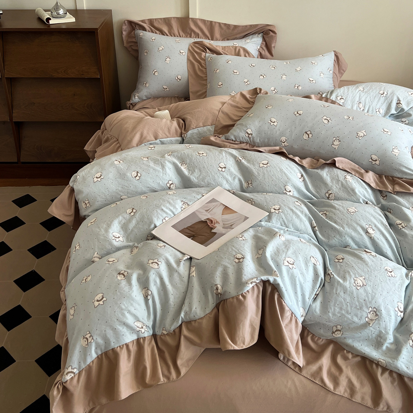 梦莱斯 2025新款高克重云感棉四件套-花边款 星星狗