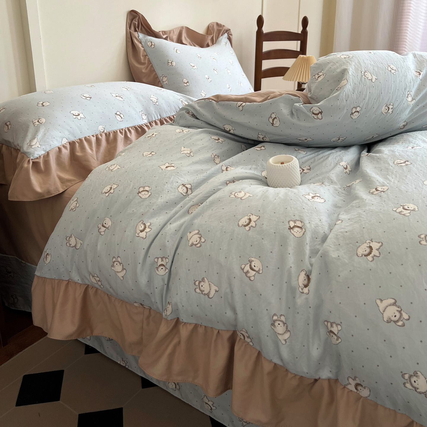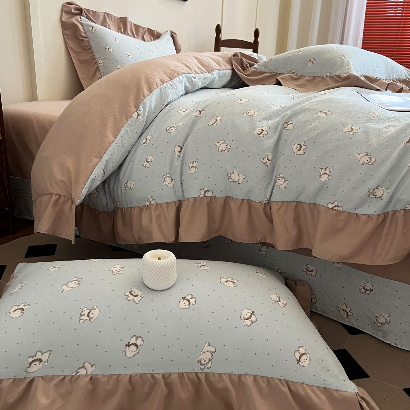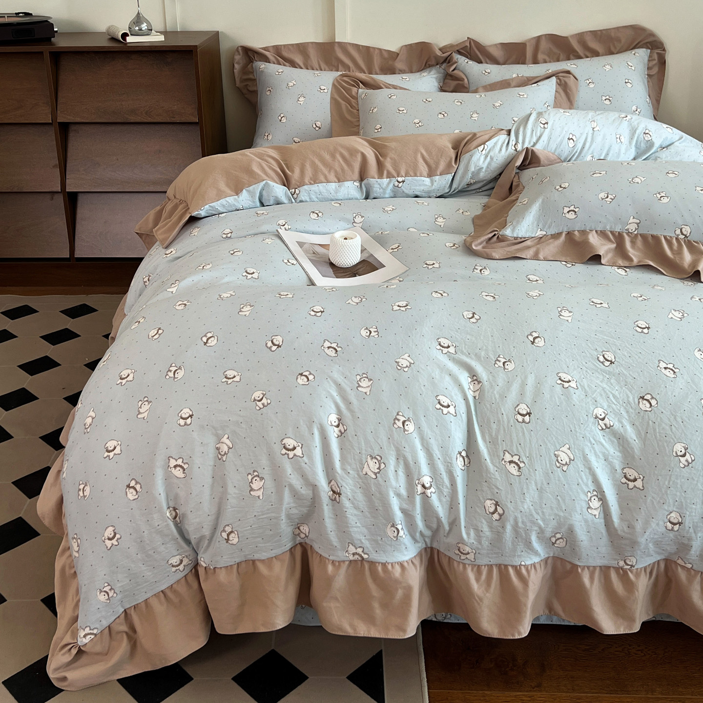 (总)梦莱斯 2025新款云感木棉皱皱双层纱全棉花边四件套,百福蓝,春风里,薄荷微凉,春晓,豆蔻,蝴蝶梦,可颂,兰黛,山野栀子,素颜,太妃糖,心动,遇见,芝士奶酪,紫爱心,紫苏,花园兔,蜡笔画,小黑兔,白茶-绿,初恋,莱茵河畔,桃花诺
