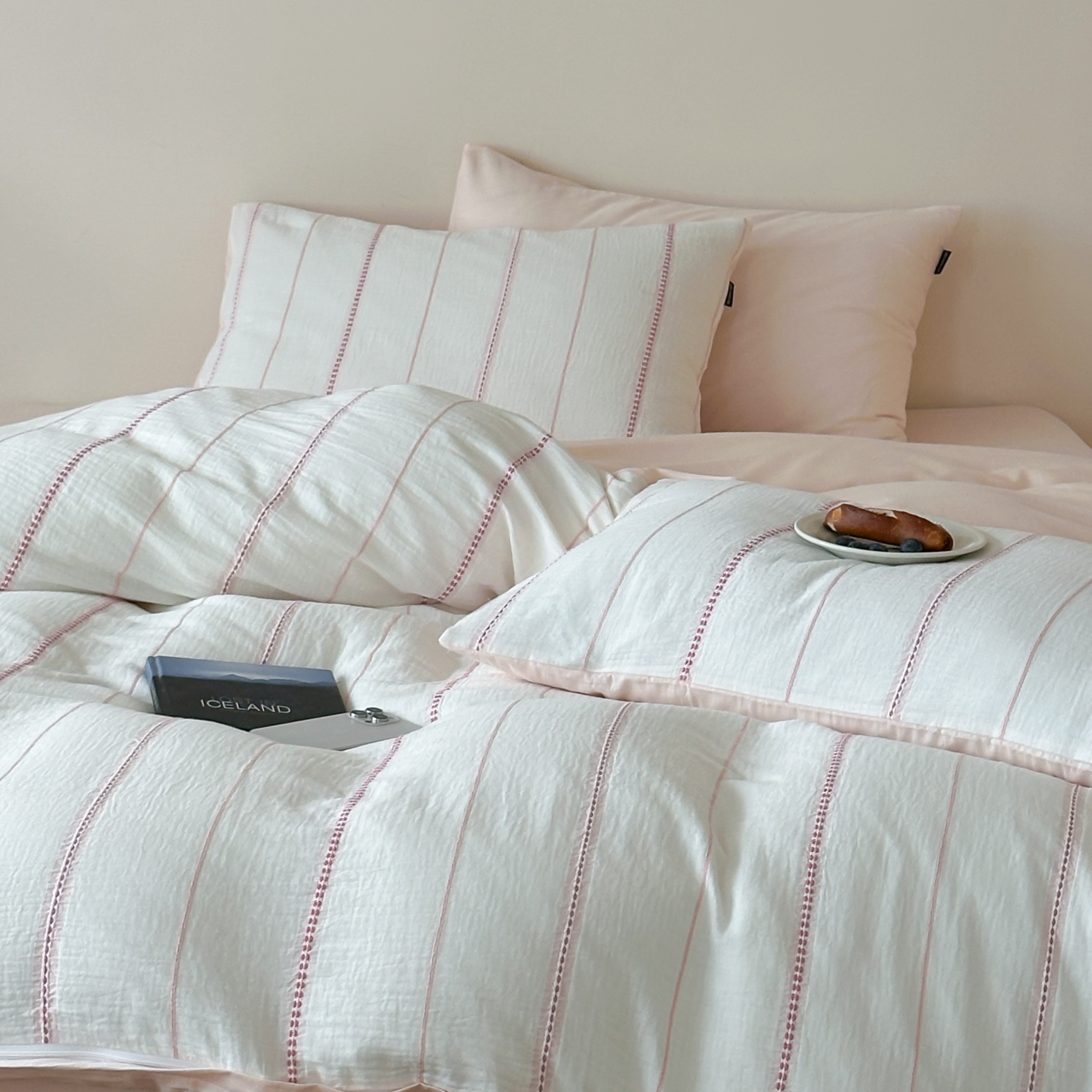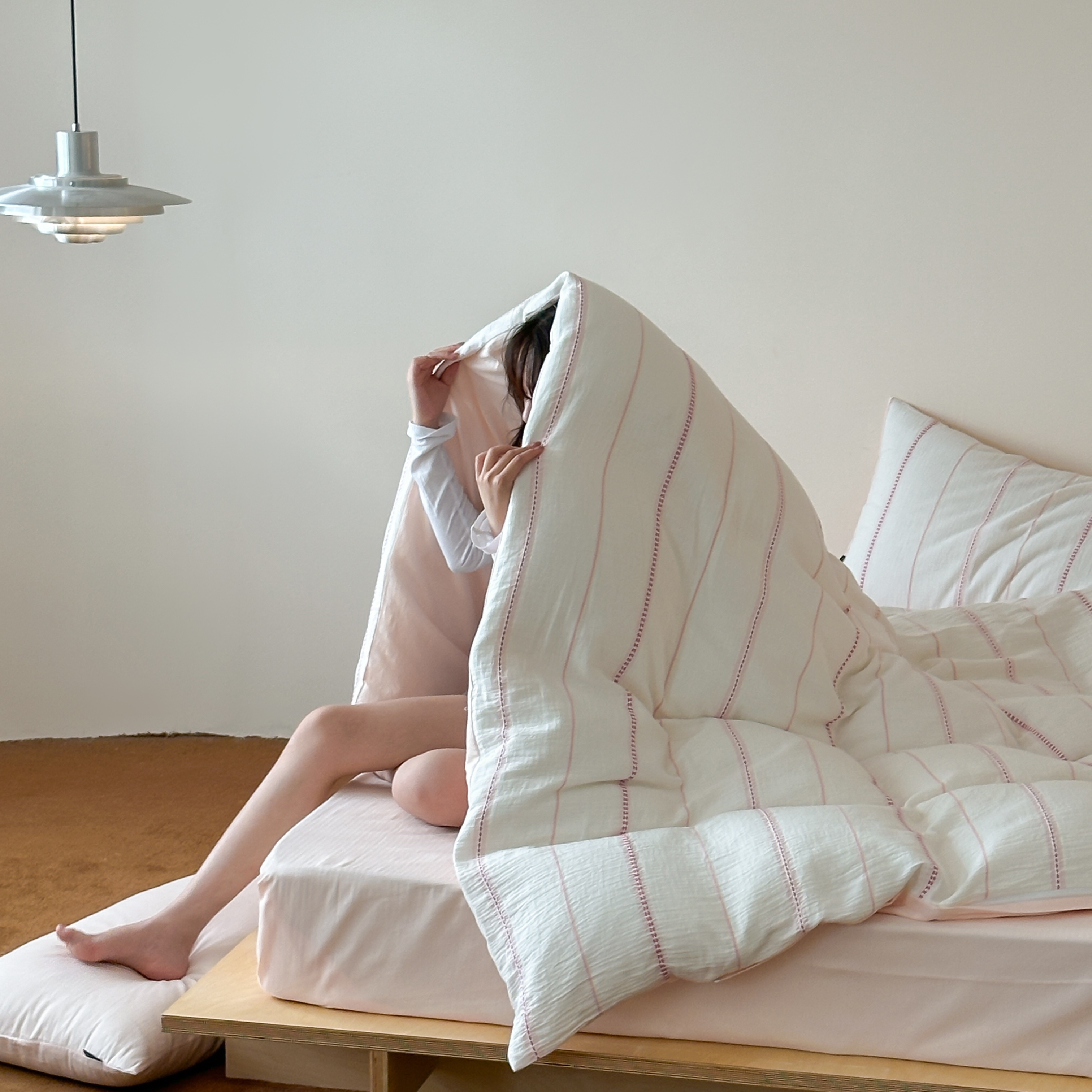 当前位置: 91家纺网 > 商品网购 > 床品套件 > 四件套 > 全棉普通四件套 > 蜜宿 2025新款全棉纯棉水洗双层纱穿线提花四件套 梨白-黄