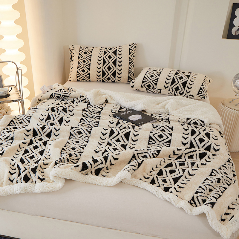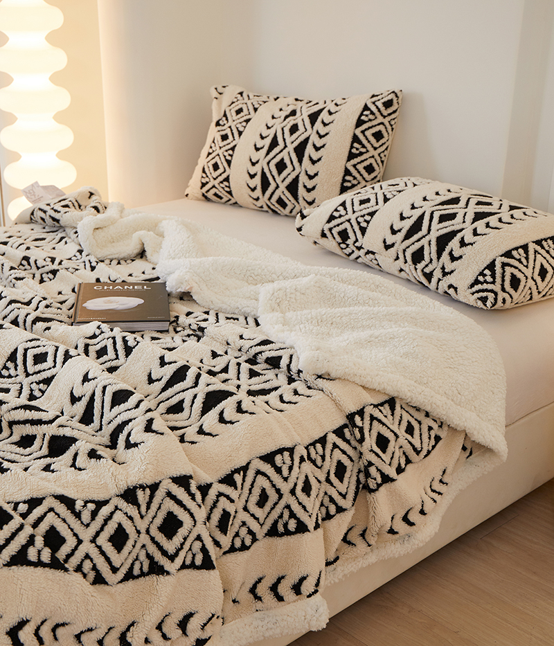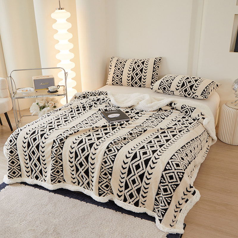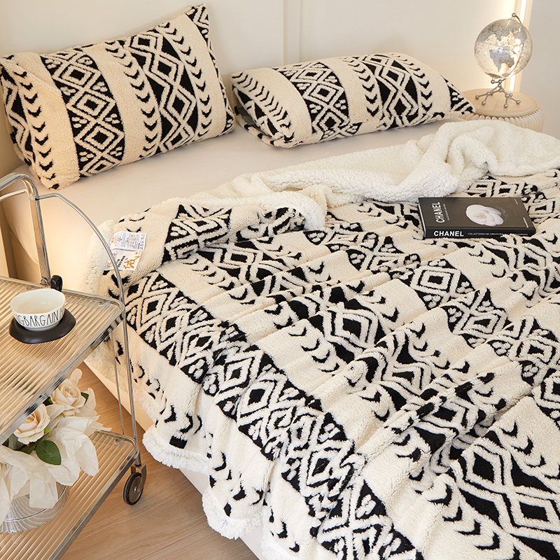 商品名称:楼兰公主 2025新款阳离子羊羔绒菱格毯毛毯毯子-麦格系列 菱格-白