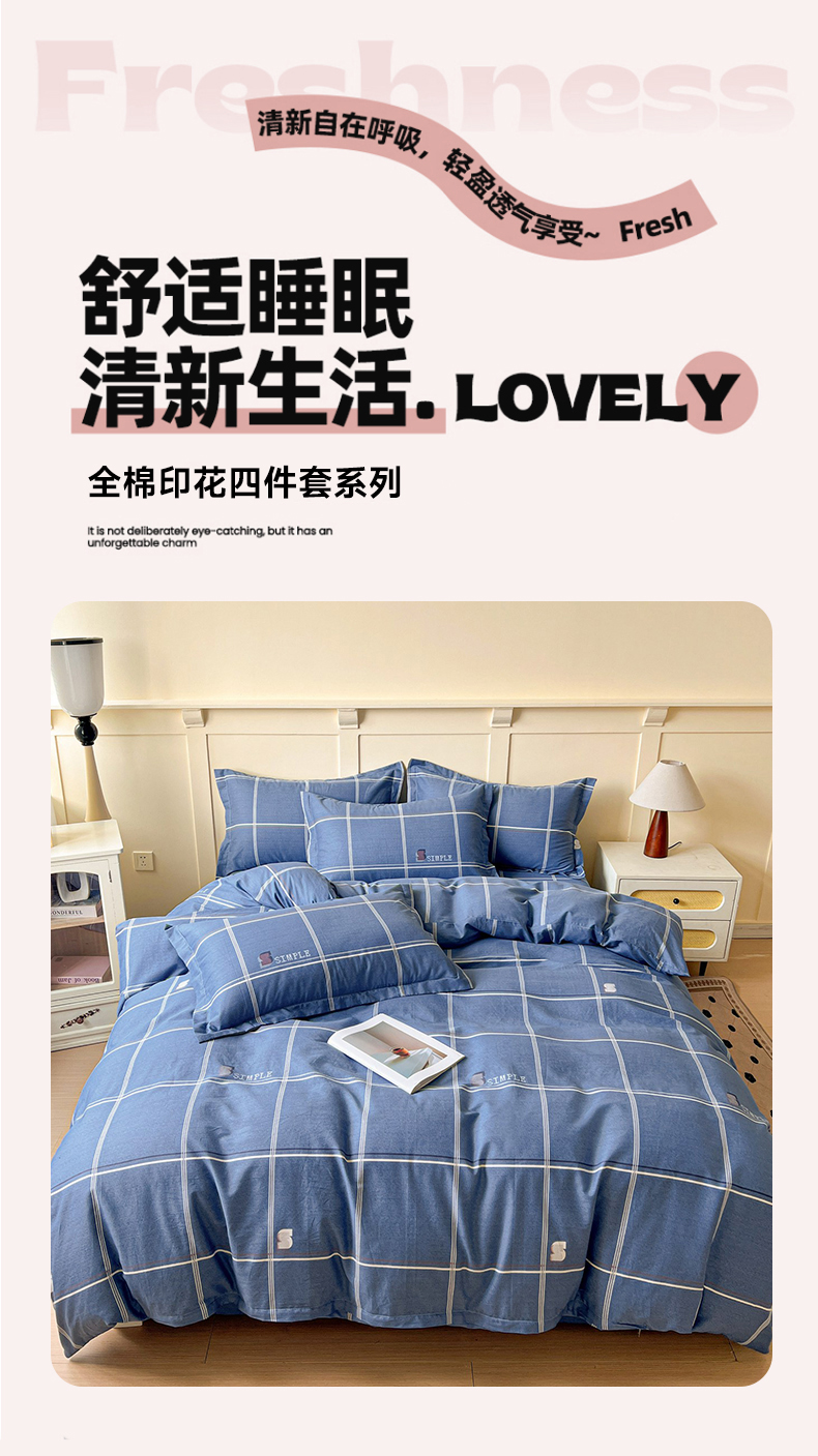 当前位置: 91家纺网 > 商品网购 > 床品套件 > 四件套 > 全棉普通四件套 > 文黛家居 2025新款全棉喷气印花全棉纯棉印花系列四件套 格韵
