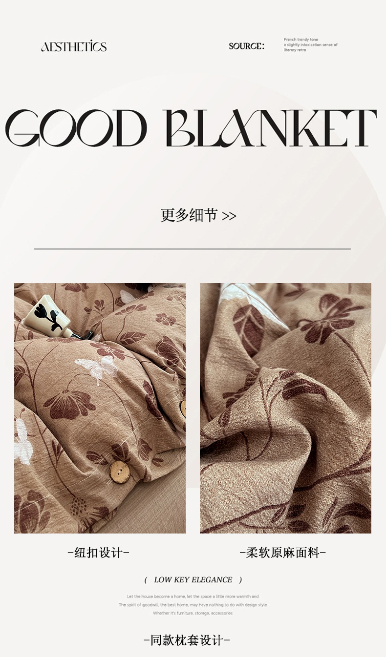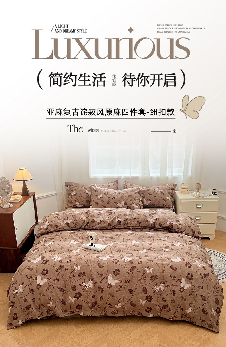 当前位置: 91家纺网 > 商品网购 > 床品套件 > 四件套 > 其它四件套 > 优佳优品 2025秋冬新款A类高克重亚麻复古侘季风复麻系列四件套 蝶影繁华
