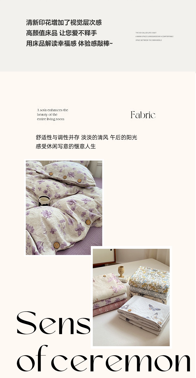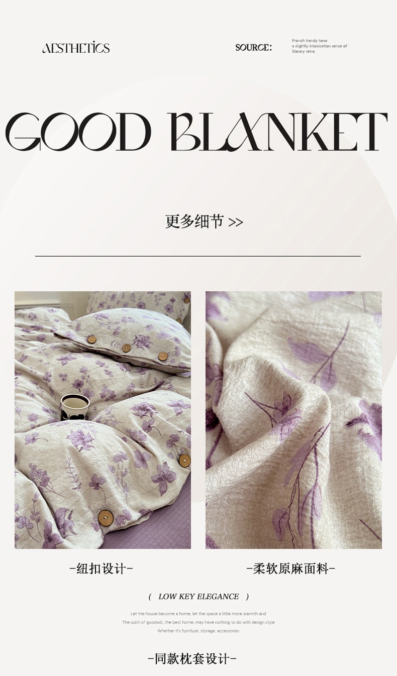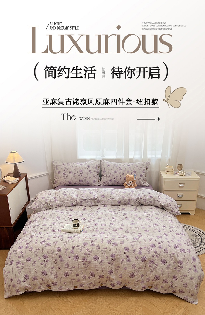 当前位置: 91家纺网 > 商品网购 > 床品套件 > 四件套 > 其它四件套 > 优佳优品 2025秋冬新款A类高克重亚麻复古侘季风复麻系列四件套 紫菀