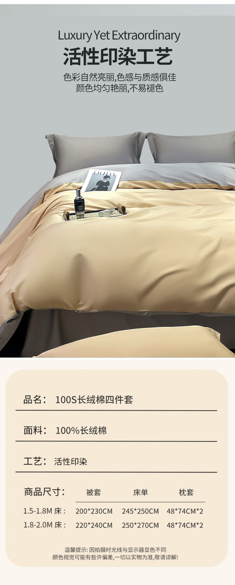 商品名称:观月轩家纺 2025新款100S长绒棉纯棉四件套 星空灰