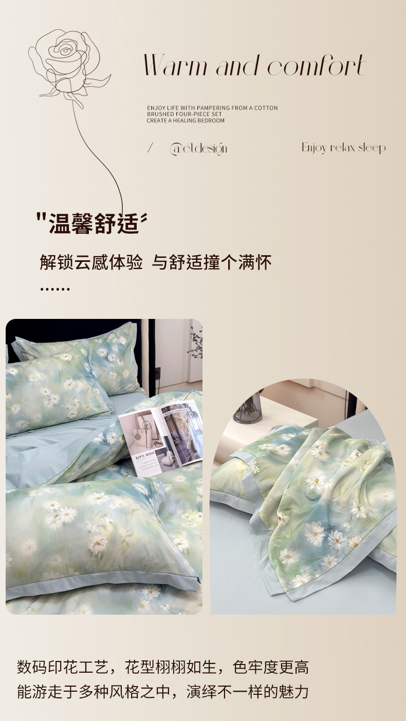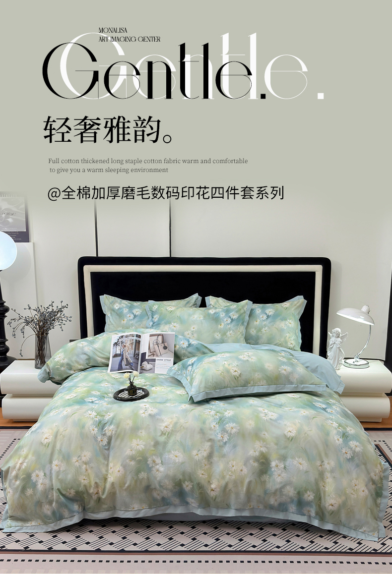 当前位置: 91家纺网 > 商品网购 > 床品套件 > 四件套 > 全棉普通四件套 > 未来家居 2025新款秋冬全棉加厚磨毛纯色印花缺角工艺系列高端礼盒包装四件套 繁华-绿