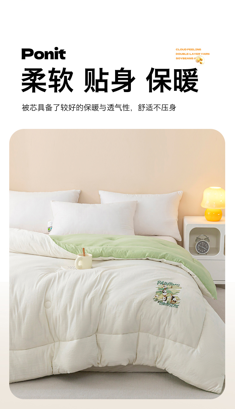 (总)帕芬鸟家纺 2025新款超柔水洗棉大豆被子被芯,米白拼绿,灰色,米白色,玉色,咖色