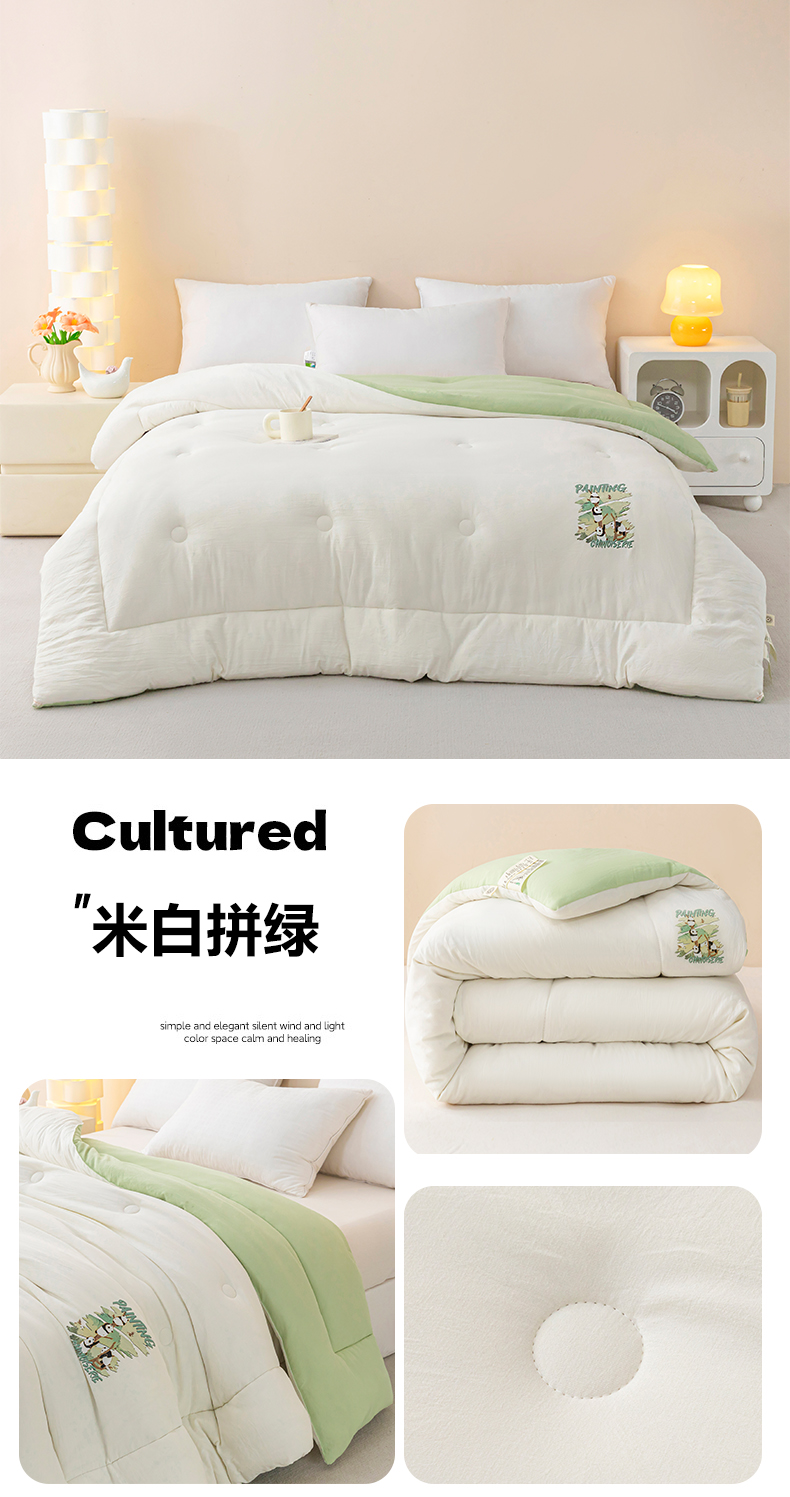 • 91家纺网 家纺一手货源 找家纺 (总)帕芬鸟家纺 2025新款超柔水洗棉大豆被子被芯,米白拼绿,灰色,米白色,玉色,咖色