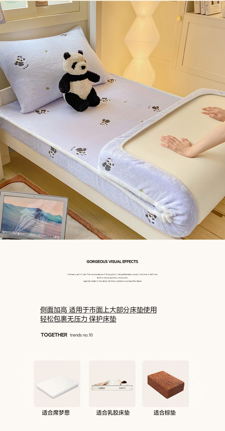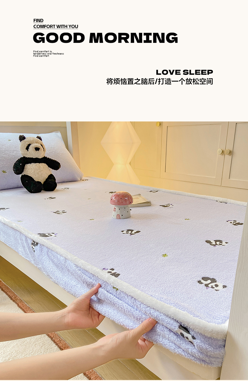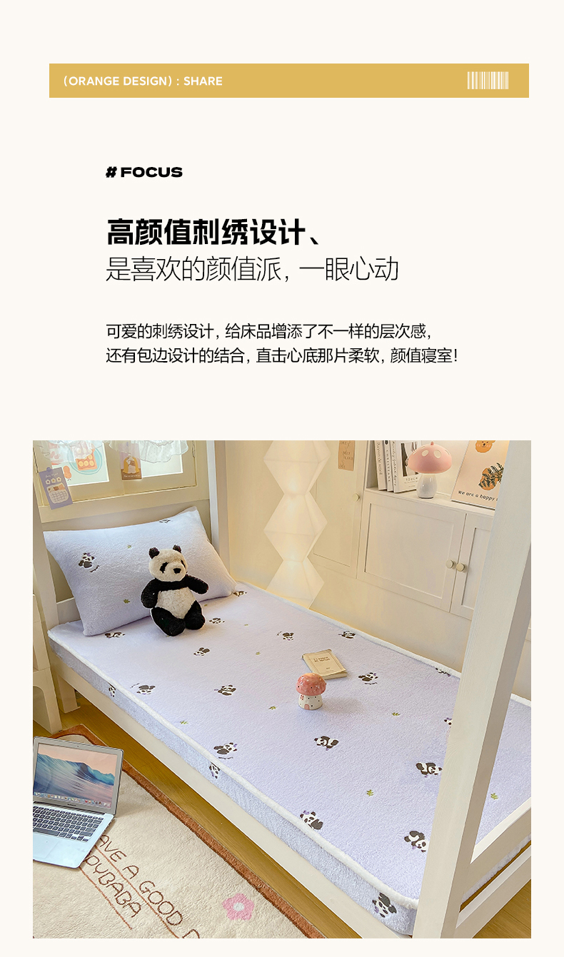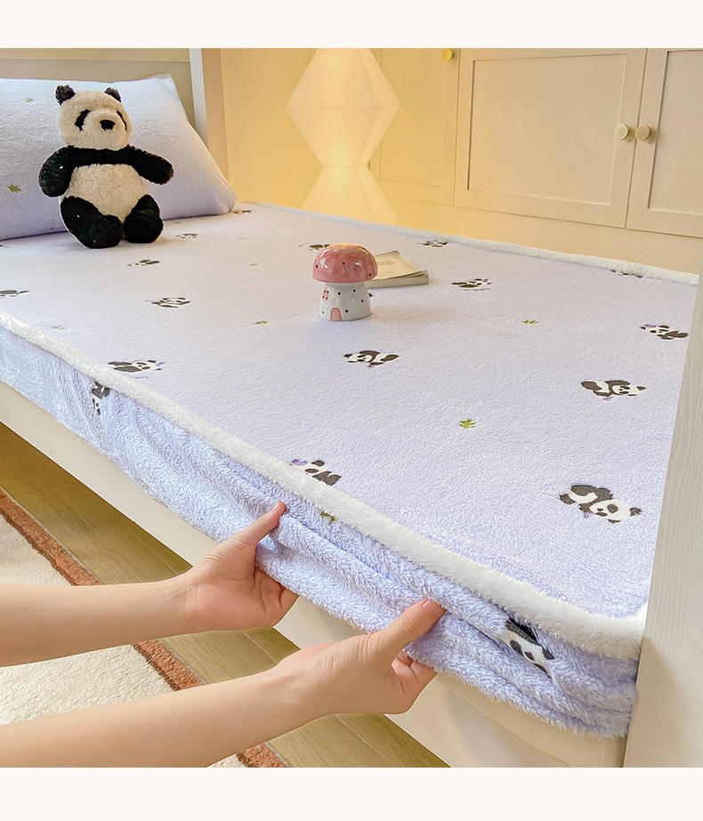 • 91家纺网 家纺一手货源 找家纺 眠势力 2025新款250g双面绒学生床笠单件三件套宿舍上下铺刺绣款牛奶绒床垫保护套 熊猫紫【双面绒刺绣款】