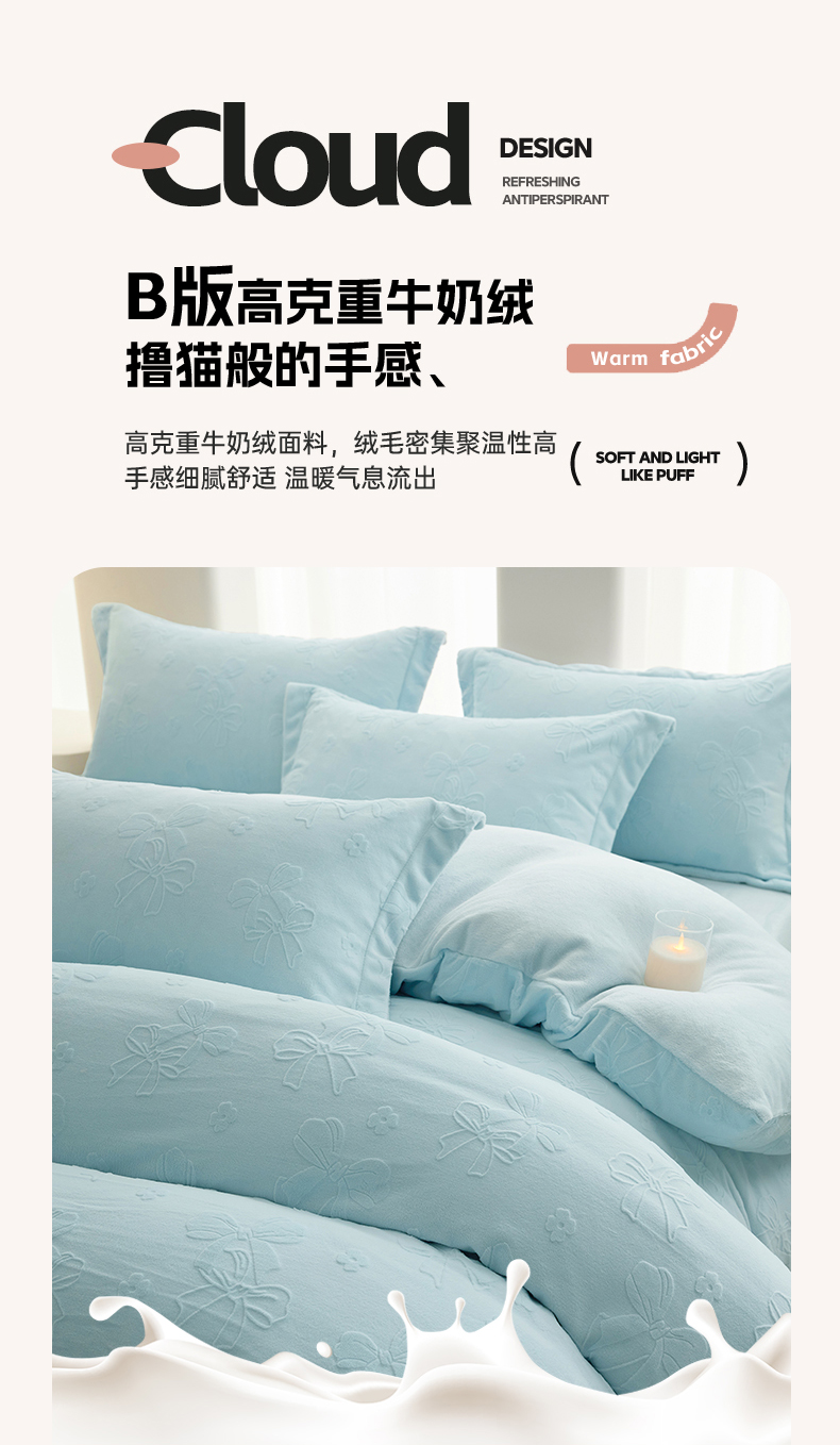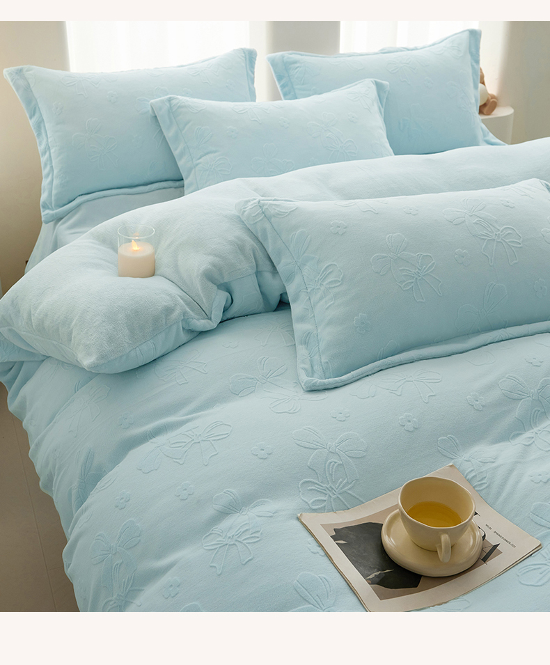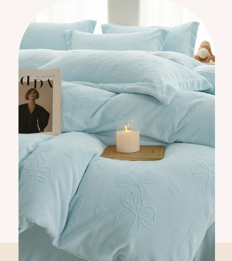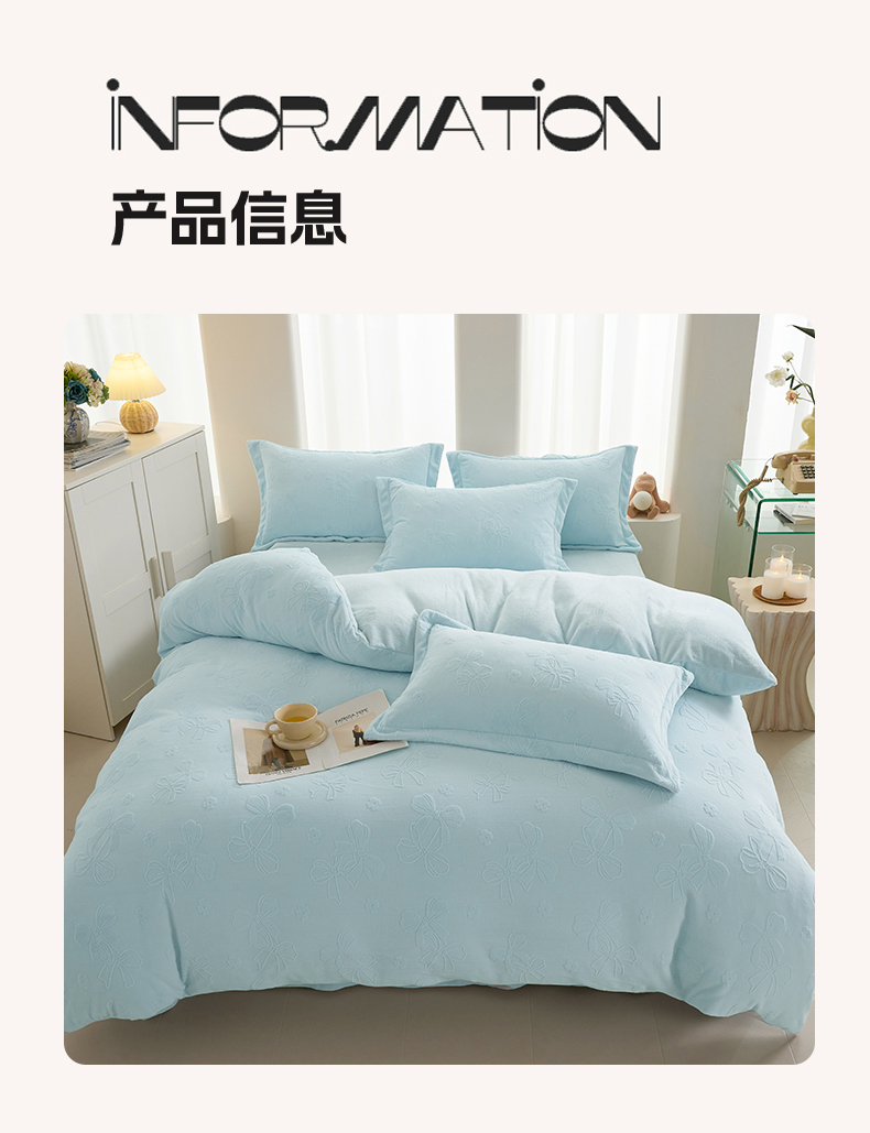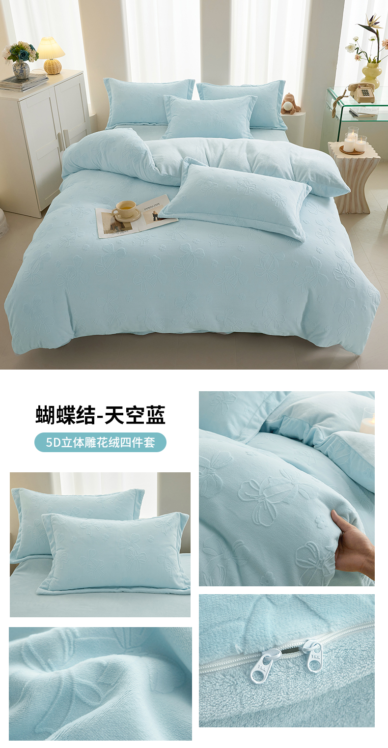 当前位置: 91家纺网 > 商品网购 > 床品套件 > 四件套 > 牛奶绒四件套 > 亿梵 2025秋冬新款A类全消光牛奶绒立体5D雕花绒四件套 蝴蝶结-天空蓝