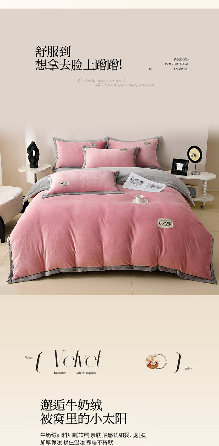 馨梦缘-2025新款牛奶绒四件套 浅豆沙+浅灰