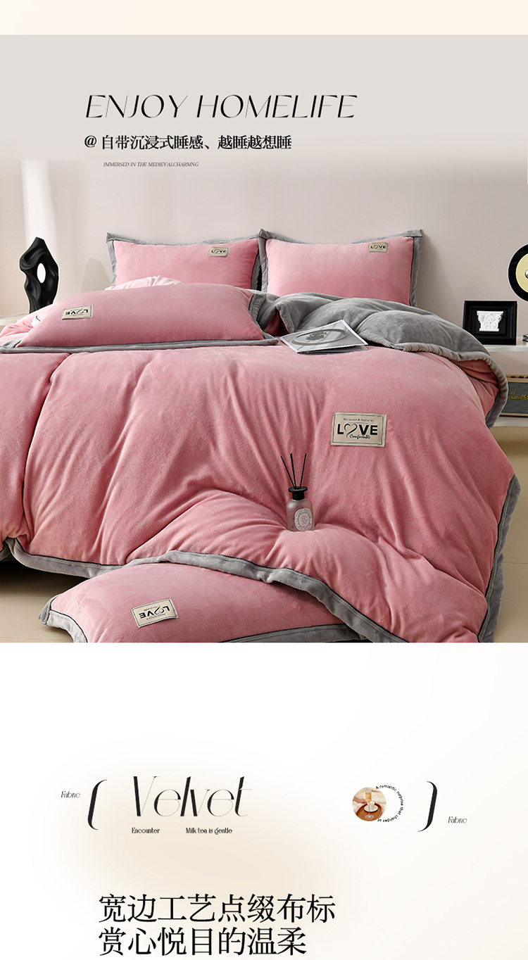 商品名称:馨梦缘-2025新款牛奶绒四件套 浅豆沙+浅灰