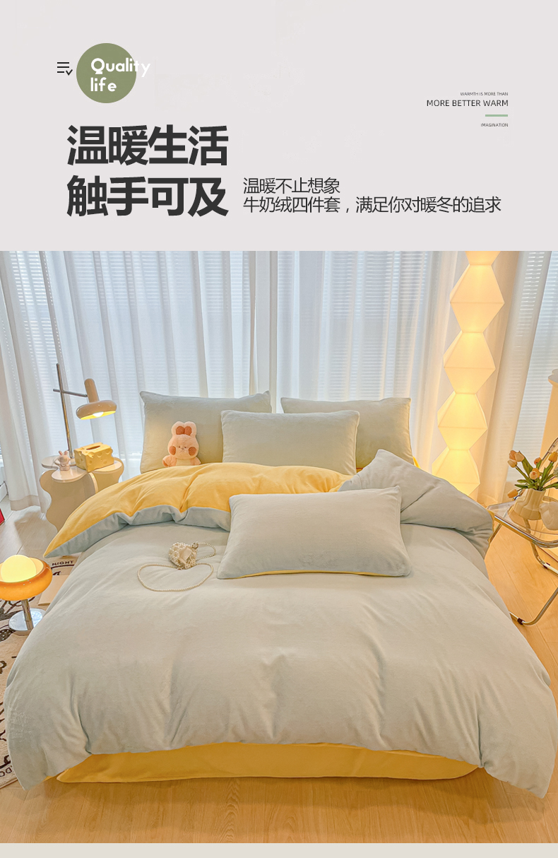 当前位置: 91家纺网 > 商品网购 > 床品套件 > 四件套 > 牛奶绒四件套 > 悦织湾家纺 2025新款简约纯色牛奶绒四件套条纹轻奢时尚冬季加厚保暖床上用品学生宿舍三四件套 牛奶绒-天空兰+浅黄