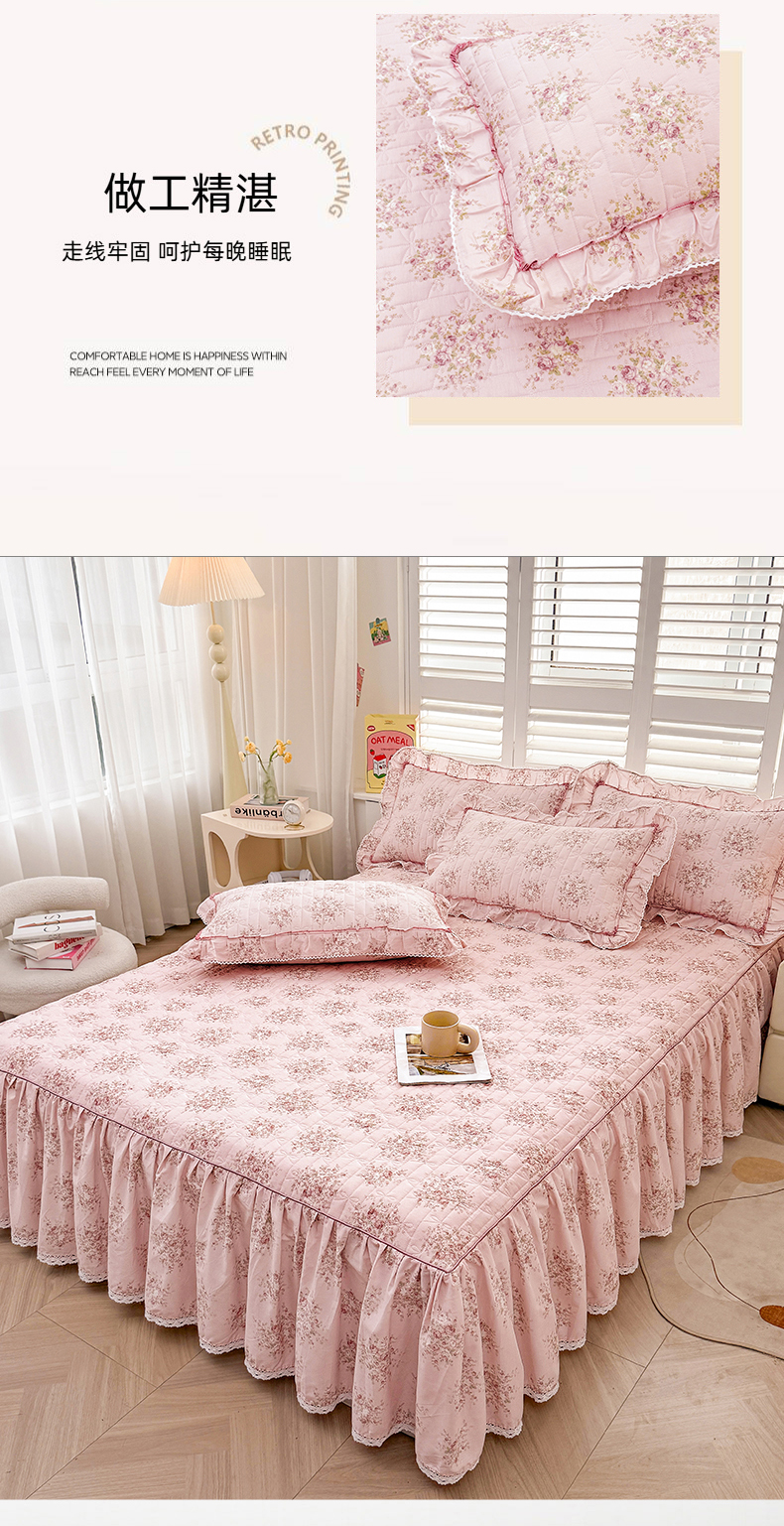 (总)缦彩 2025新款韩版A类全棉公主风纯棉夹棉床裙,缤纷绮梦,蒂芙尼,多丽粉,卡曼-粉,雾岛听风-粉,小萝莉