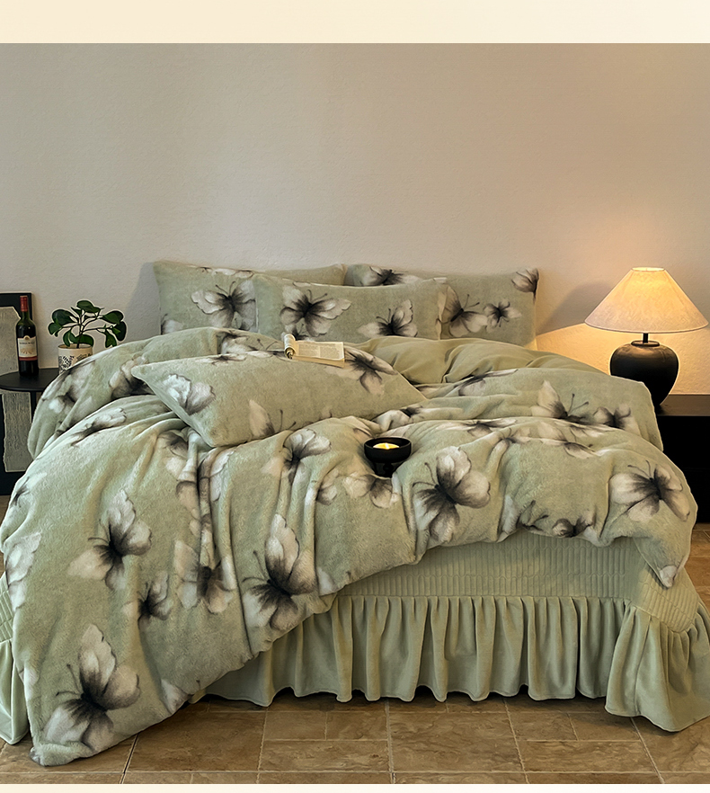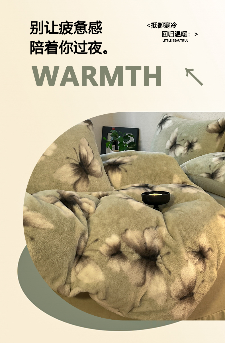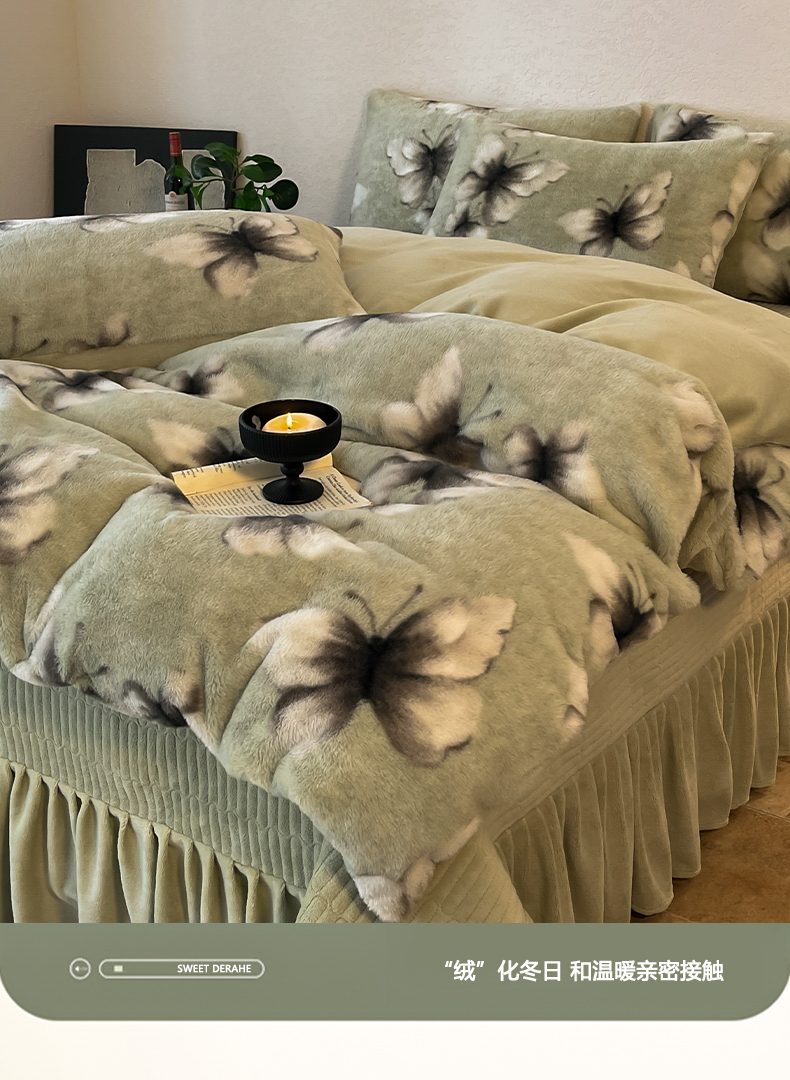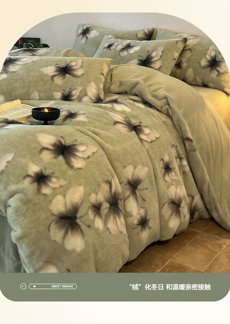 当前位置: 91家纺网 > 商品网购 > 床品套件 > 四件套 > 牛奶绒四件套 > 子曰 2025新款美拉德高克重兔绒牛奶绒床盖款四件套 简约款-蝶舞绿