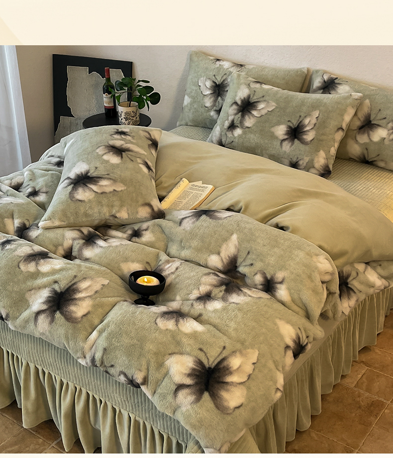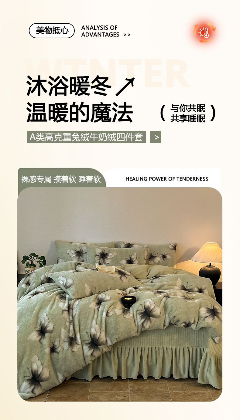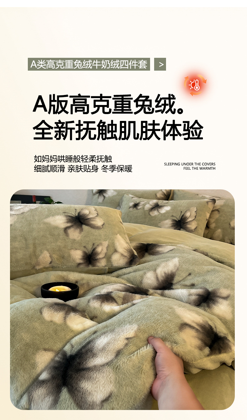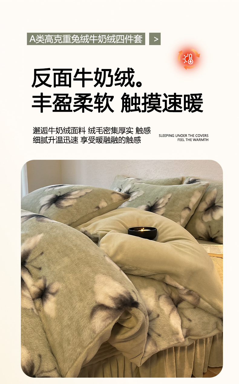 当前位置: 91家纺网 > 商品网购 > 床品套件 > 四件套 > 牛奶绒四件套 > 子曰 2025新款美拉德高克重兔绒牛奶绒床盖款四件套 简约款-蝶舞绿