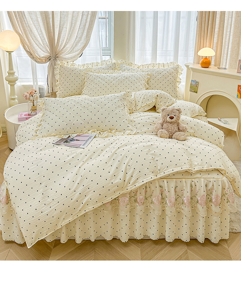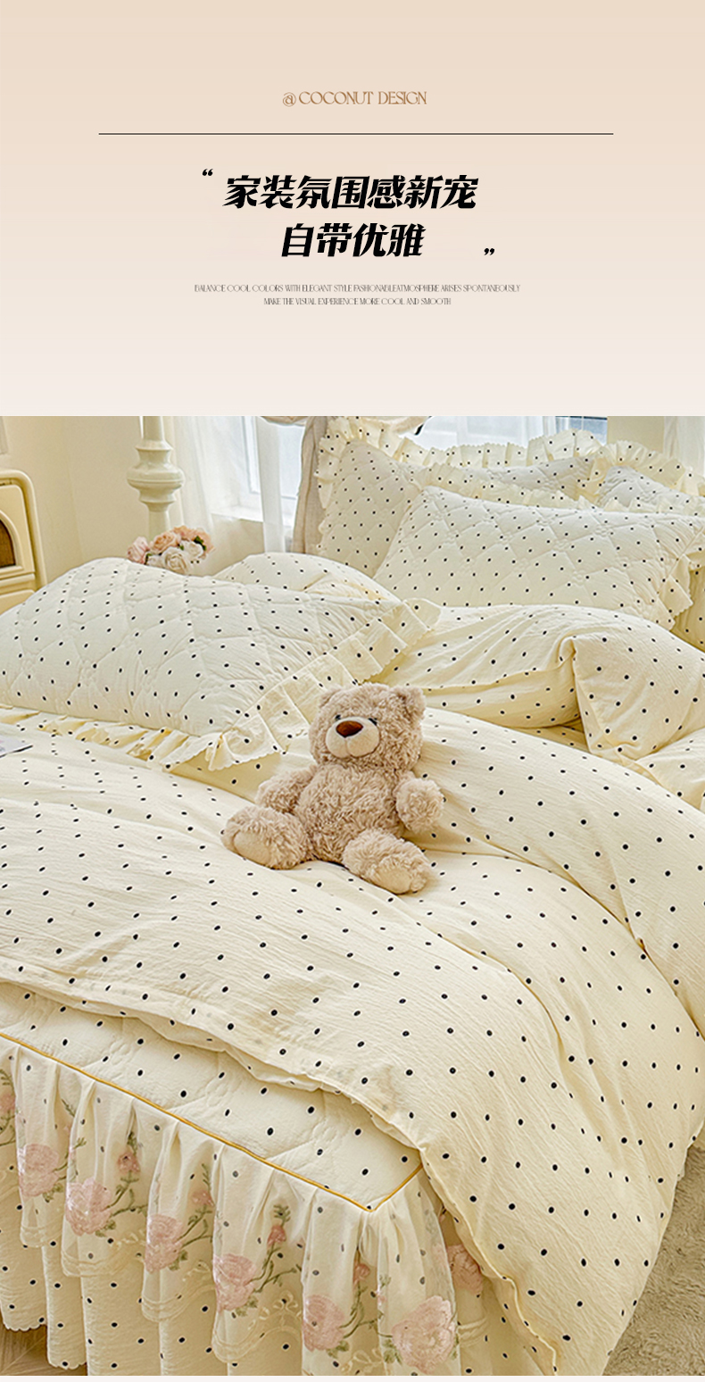 当前位置: 91家纺网 > 商品网购 > 床品套件 > 四件套 > 其它四件套 > 艾裙海 2025秋冬新款木棉皱皱双层纱夹棉床裙系列四件套 黑色波点