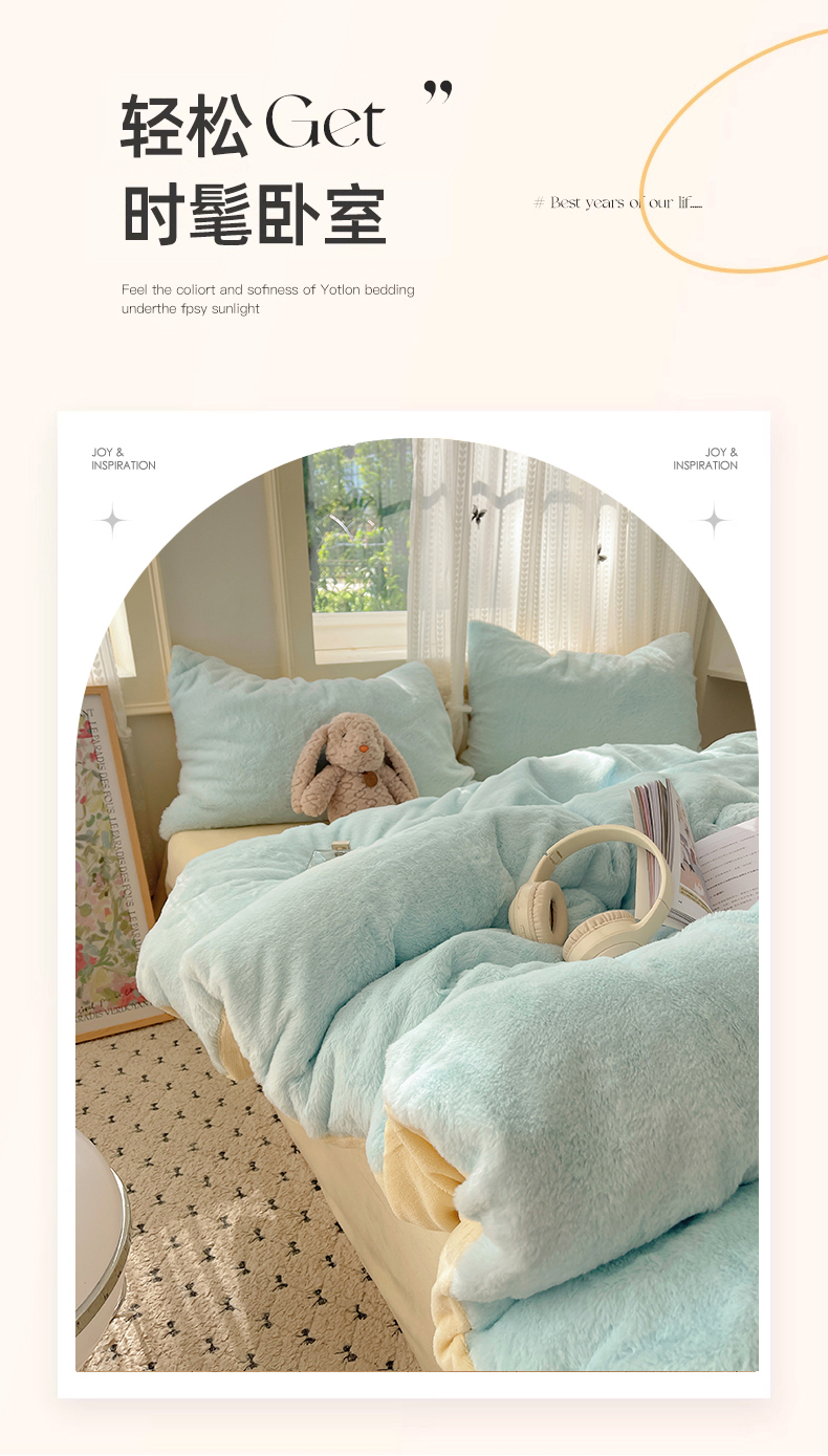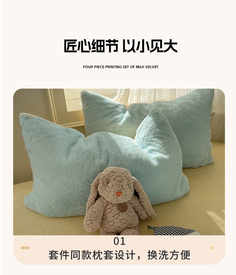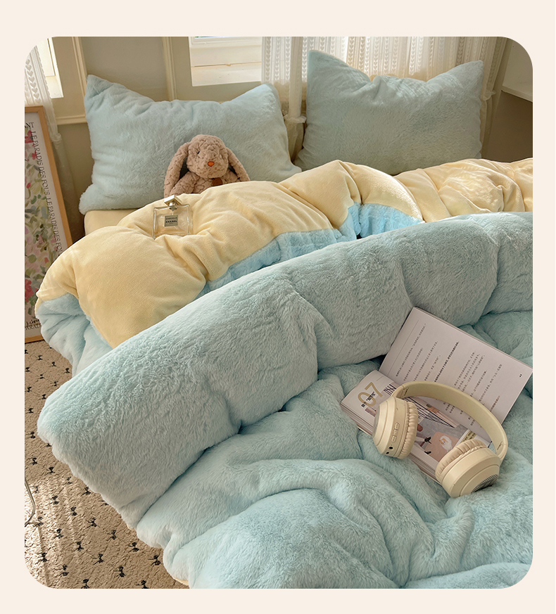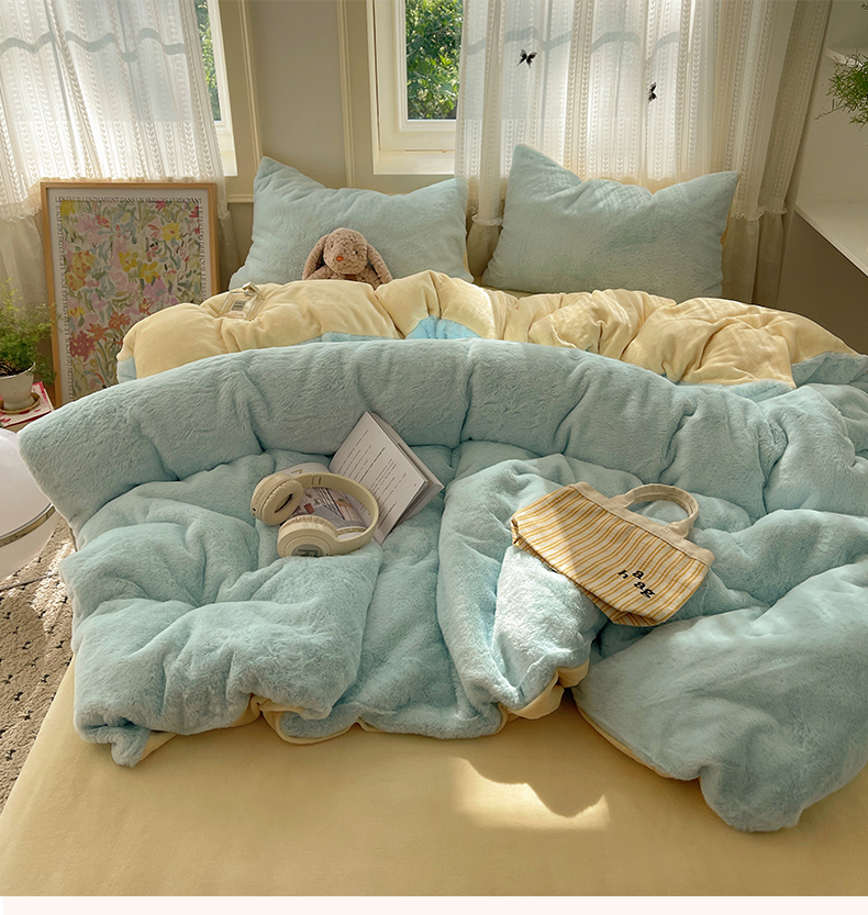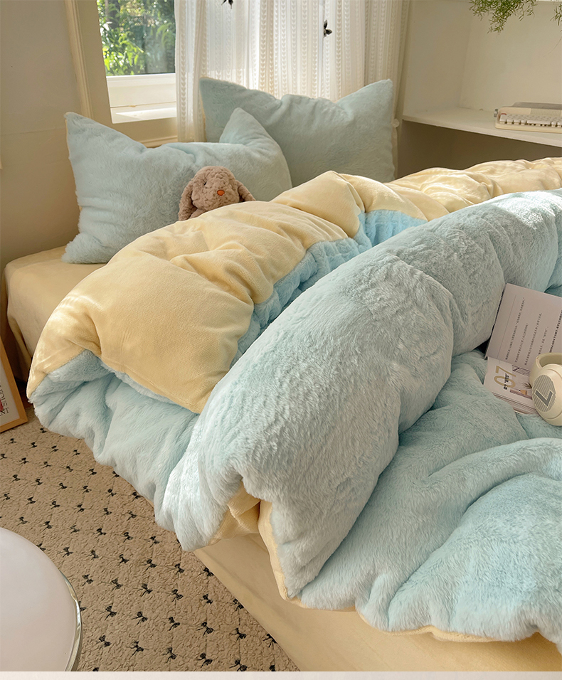 当前位置: 91家纺网 > 商品网购 > 床品套件 > 四件套 > 牛奶绒四件套 > 金爱家 2025新款全消光牛奶绒A类纯色獭兔毛绒立体四件套 混搭-蓝黄
