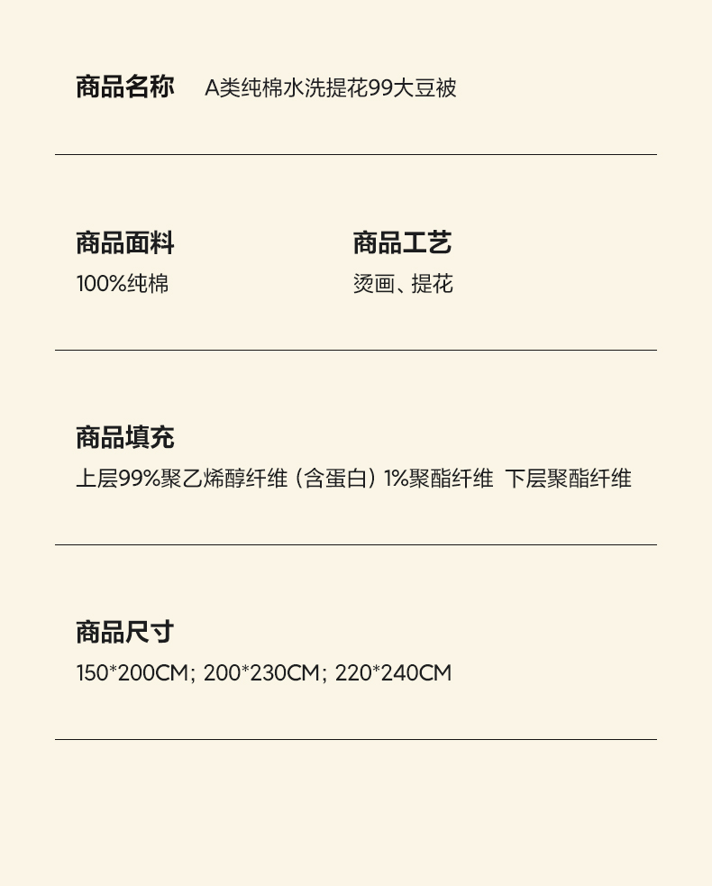 220x240cm春秋被5.5斤 | ¥132.00 |
