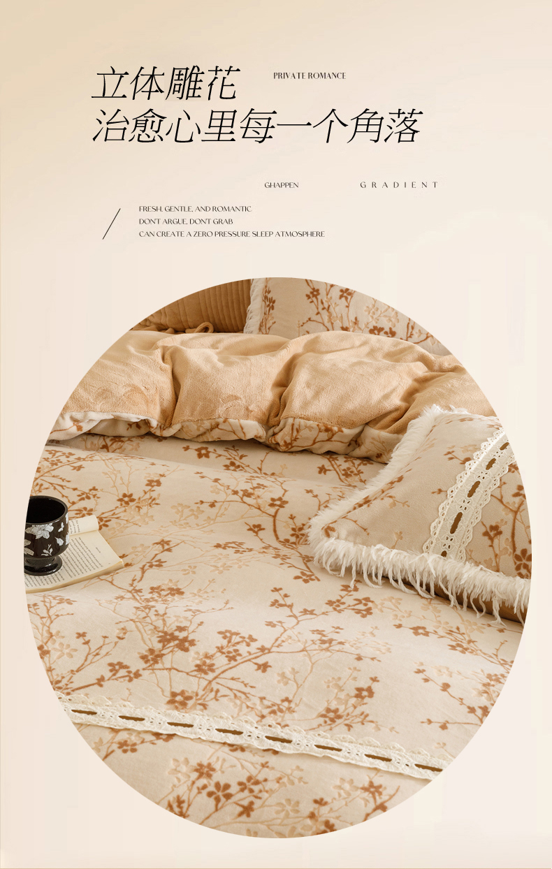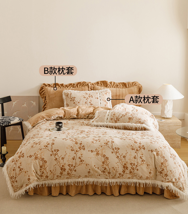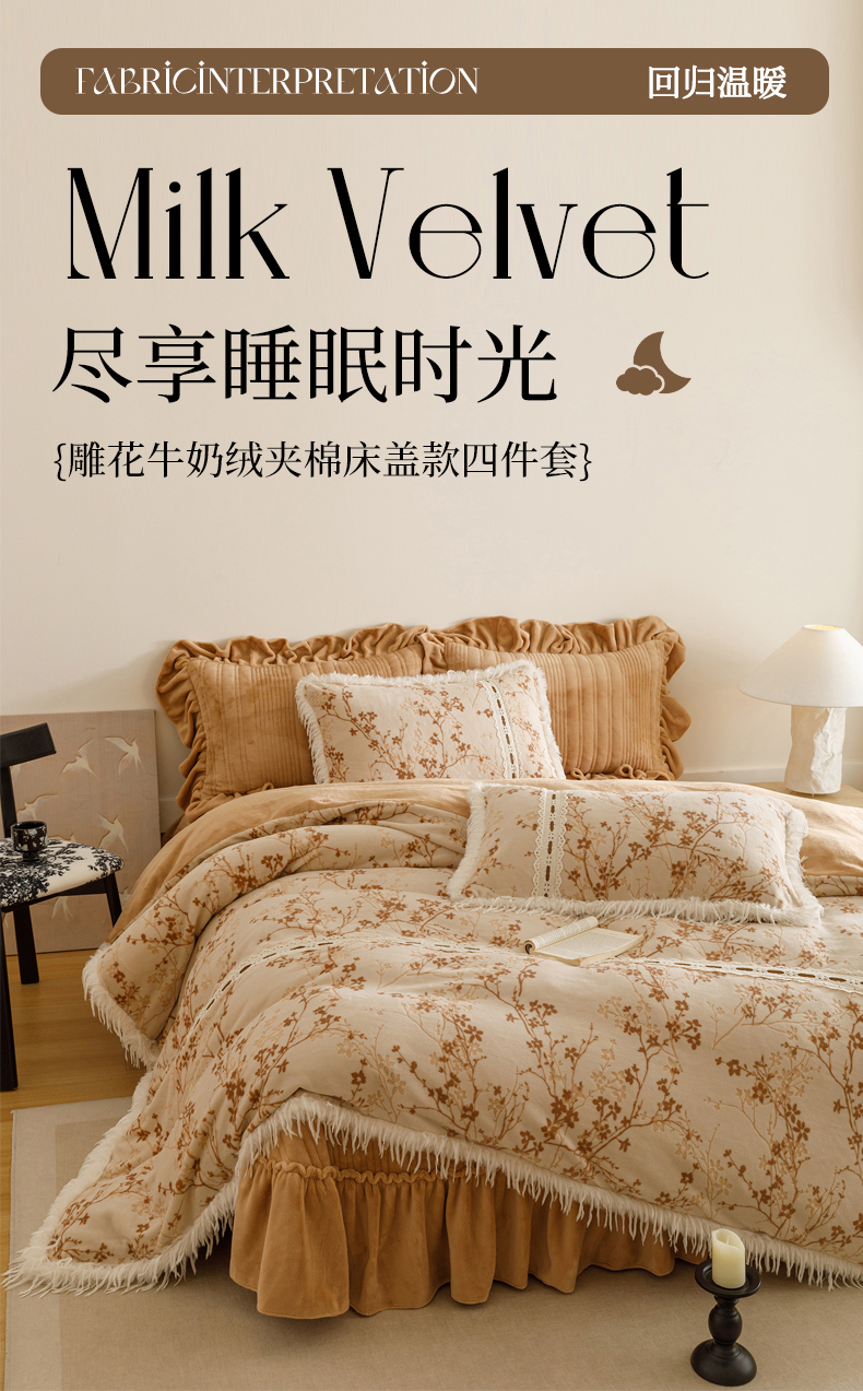 当前位置: 91家纺网 > 商品网购 > 床品套件 > 四件套 > 牛奶绒四件套 > (总)菊上家纺 2025新款高克重5D雕花牛奶绒时尚仿皮草国潮风床盖四件套-羽妃系列