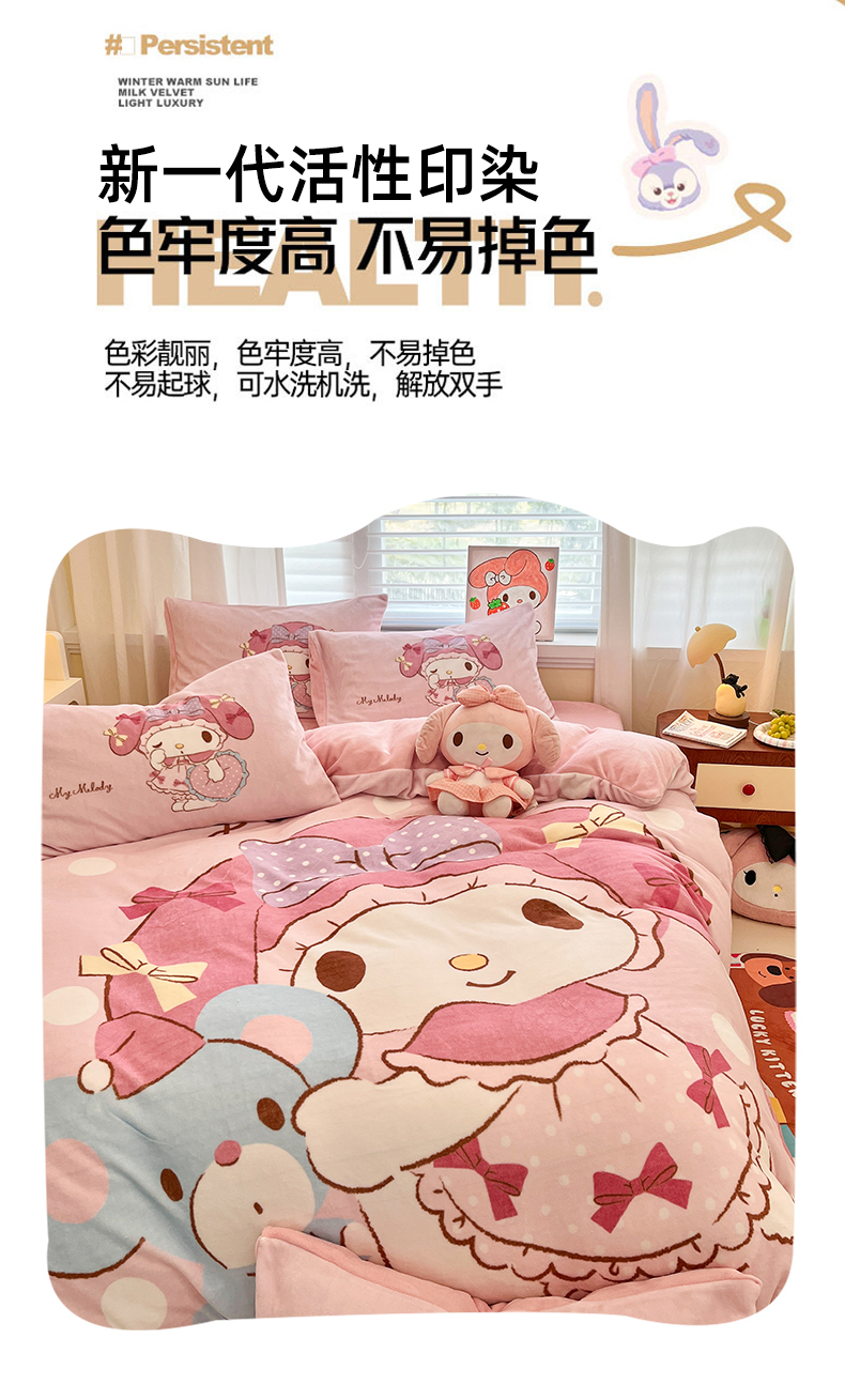 当前位置: 91家纺网 > 商品网购 > 床品套件 > 四件套 > 牛奶绒四件套 > 金爱家 2025新品大版卡通平网数码印花加厚高克重牛奶绒皮卡丘系列四件套 绒大版-公主美乐蒂