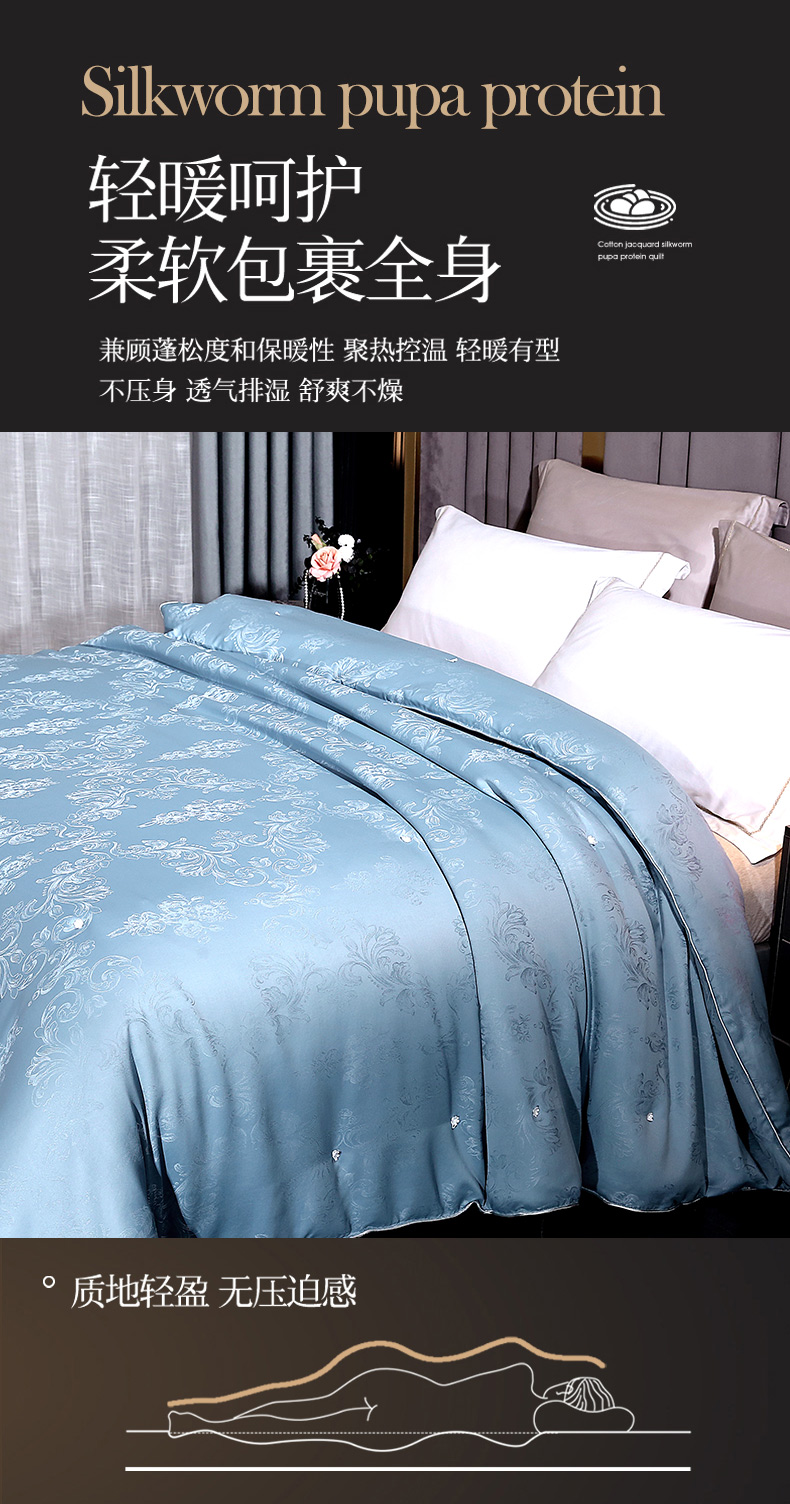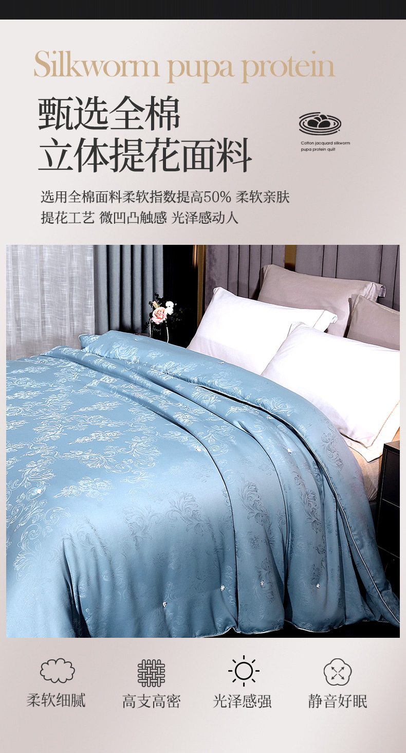 • 91家纺网 家纺一手货源 找家纺 芭芭棉家纺 2025新款全棉提花云端之梦被子被芯 云端之梦蓝色