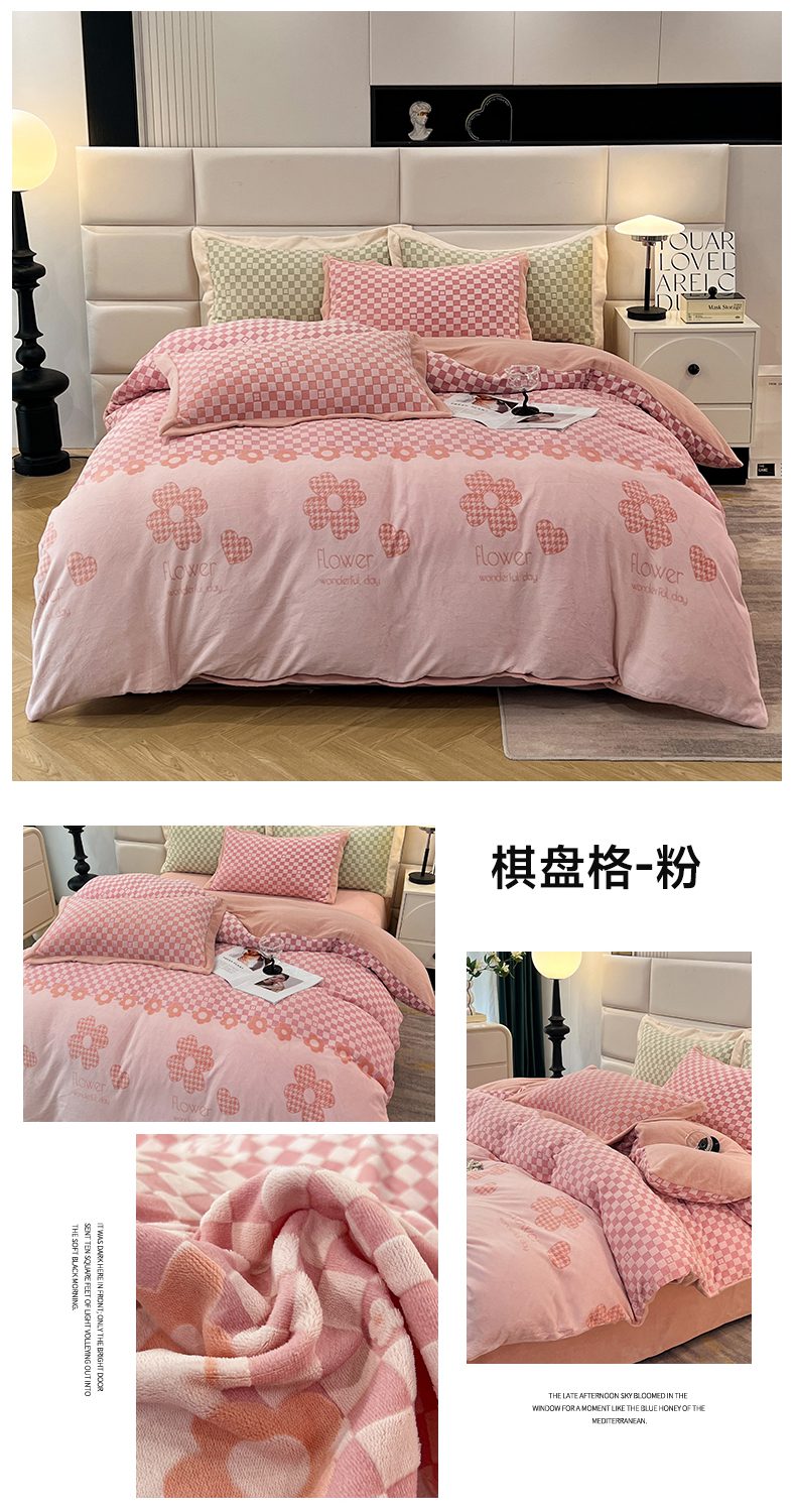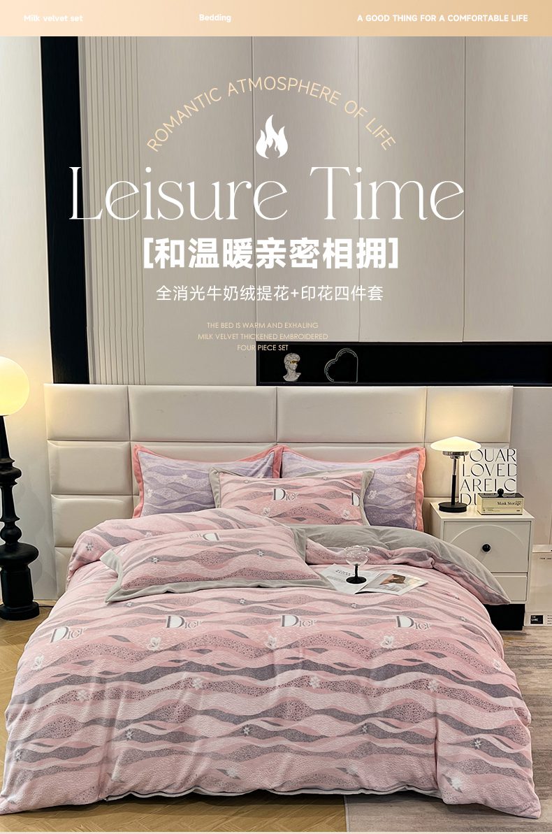 (总)花香四季家纺 2025新款雕花绒牛奶绒夹棉床盖款四件套系列-浪漫情缘,浪漫情缘-粉色,浪漫情缘-米白
