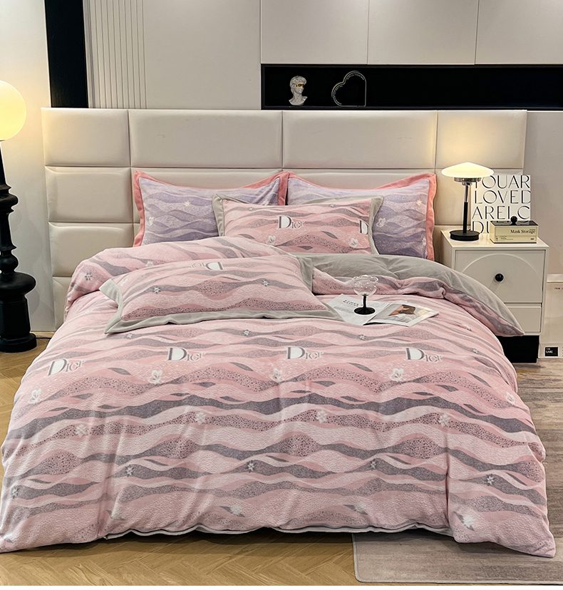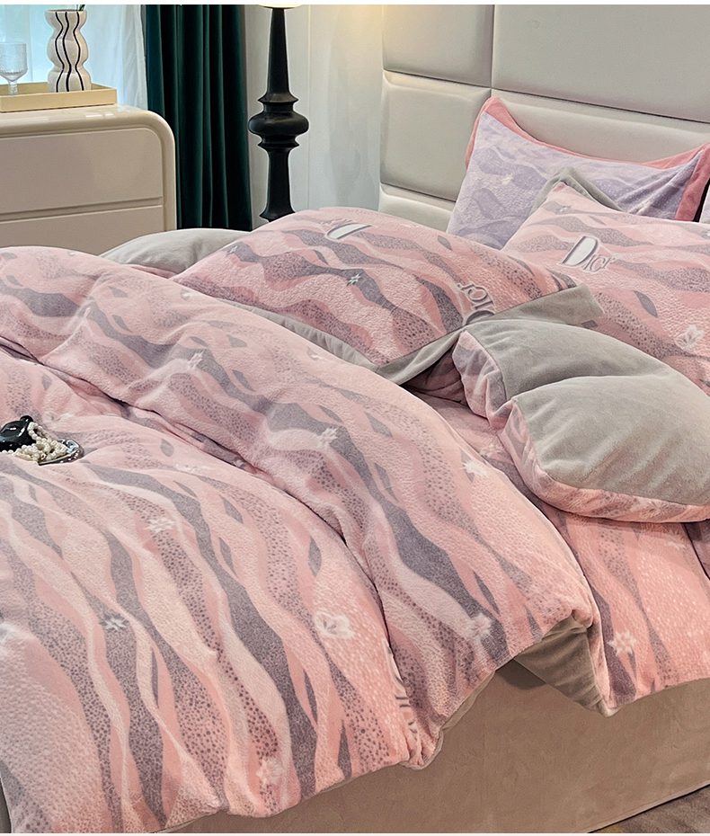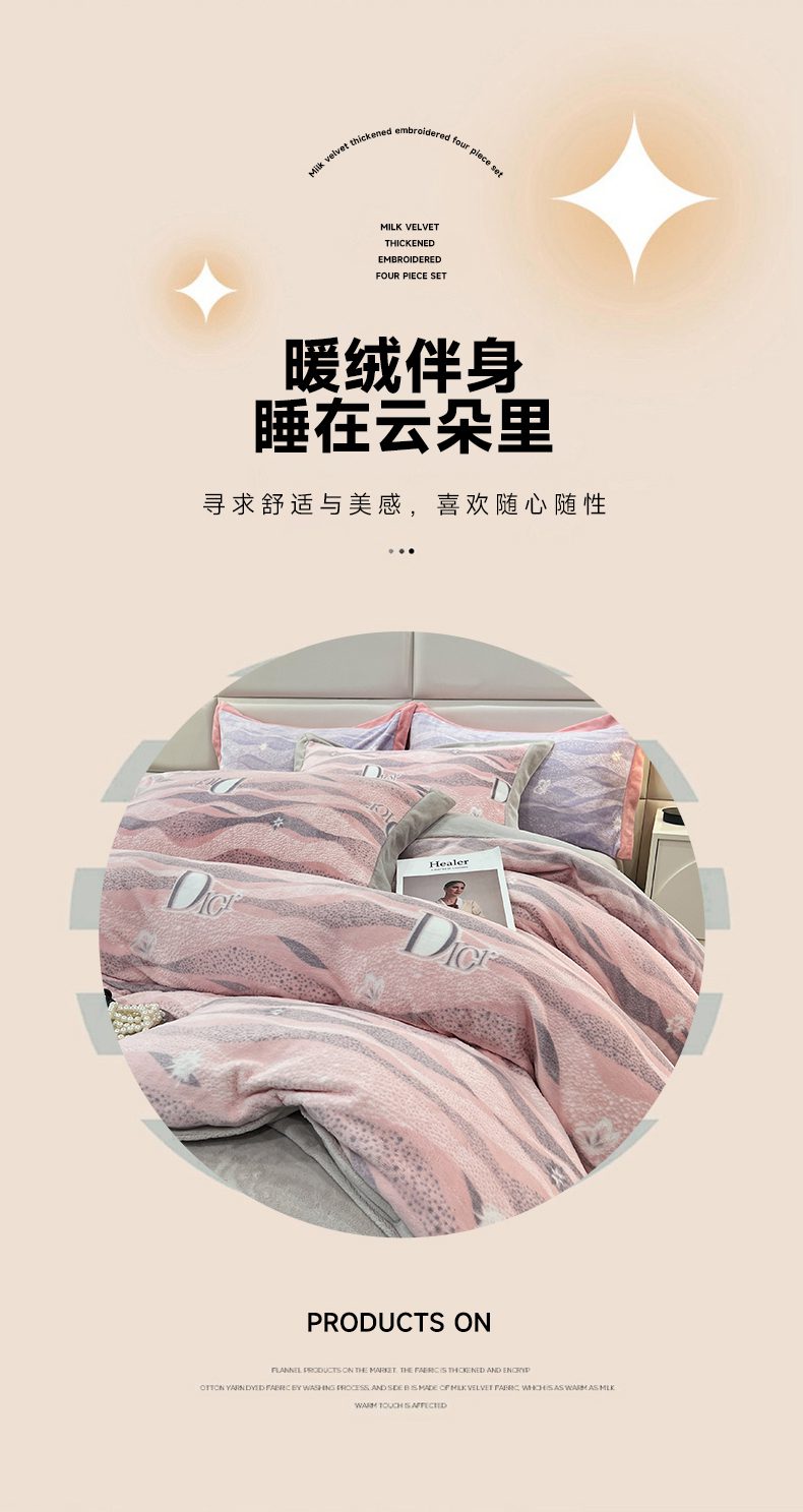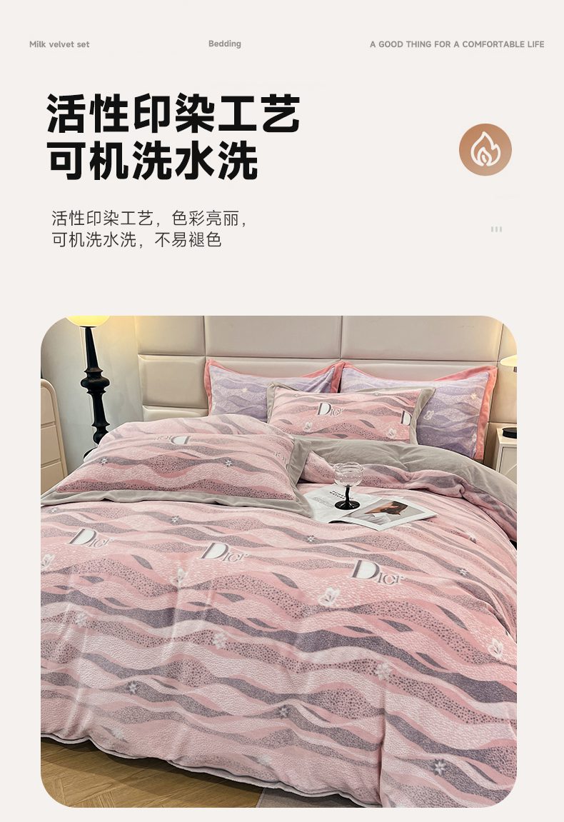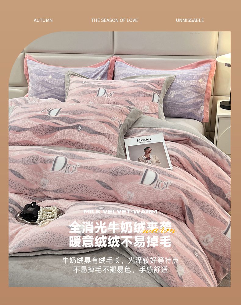 花香四季家纺 2025新款全消光工艺320克牛奶绒四件套 迷失幻境-粉