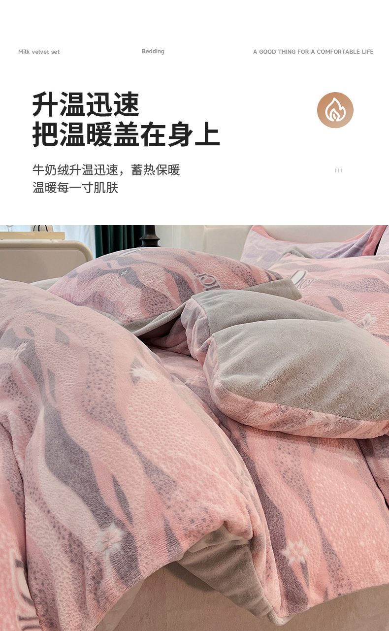 商品名称:花香四季家纺 2025新款全消光工艺320克牛奶绒四件套 迷失幻境-粉