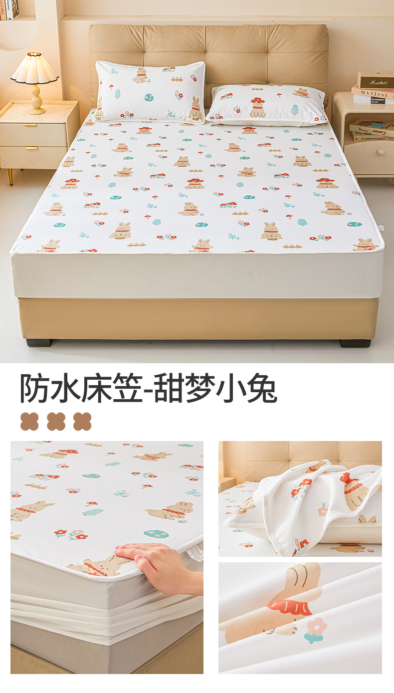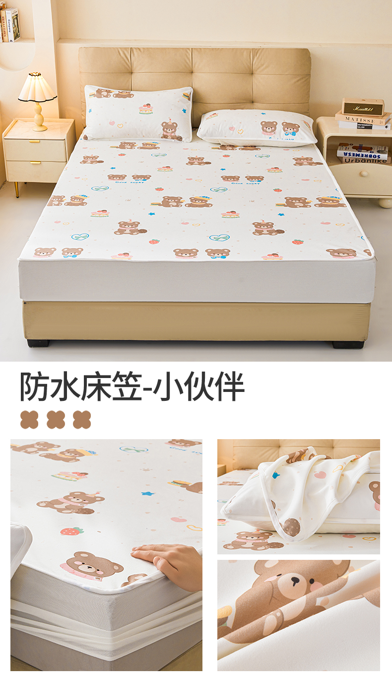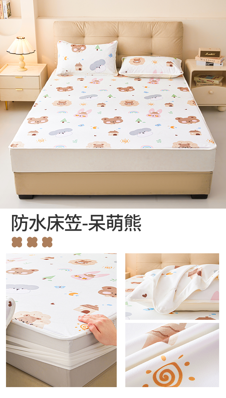 • 91家纺网 家纺一手货源 找家纺 雯豆家纺 2025新款TPU防水隔尿床笠防脏垫单床笠床笠单件 防水床笠-呆萌熊