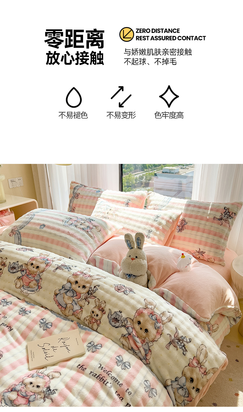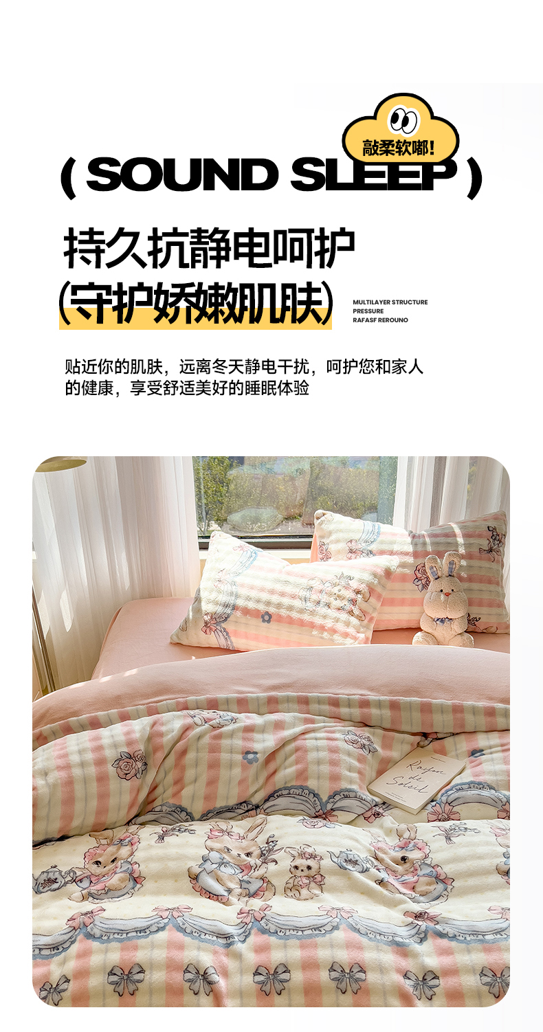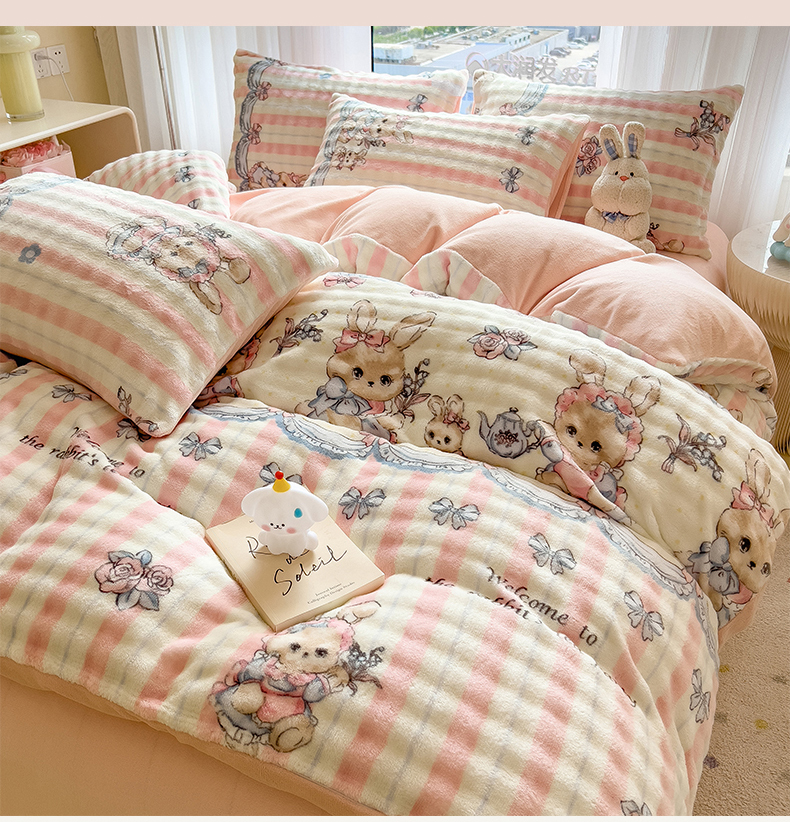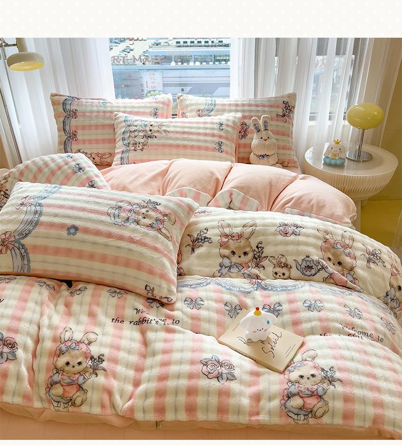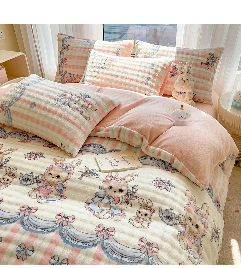 当前位置: 91家纺网 > 商品网购 > 床品套件 > 四件套 > 牛奶绒四件套 > 摩妮卡 2025新款小清新加厚260克牛奶绒泡泡绒四件套 洛丽兔