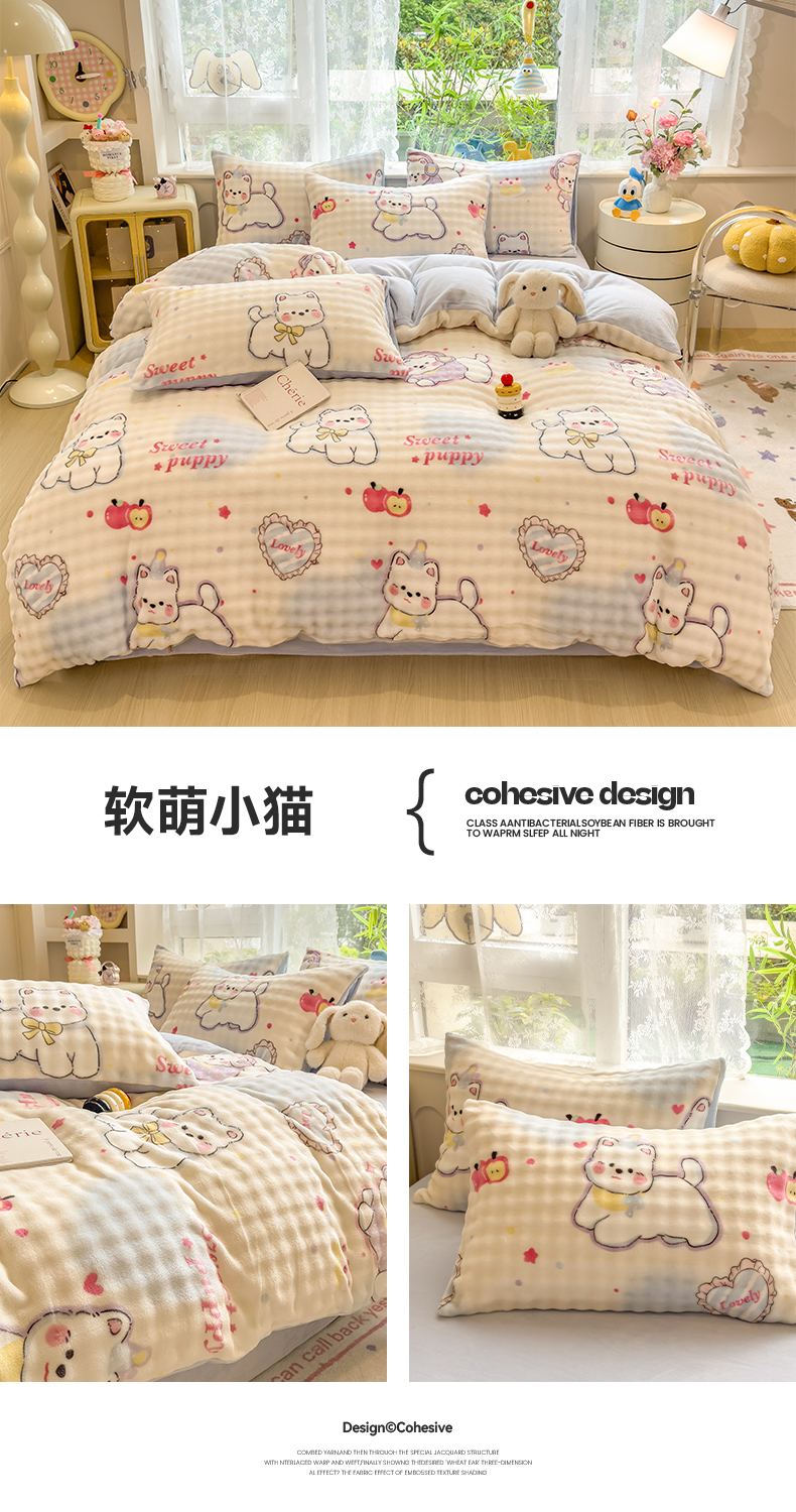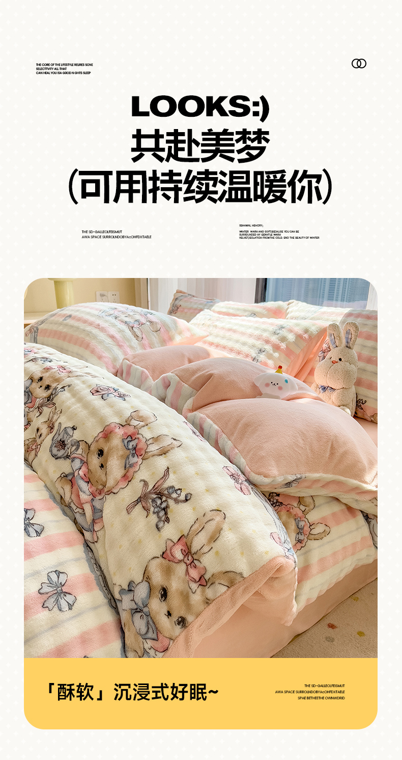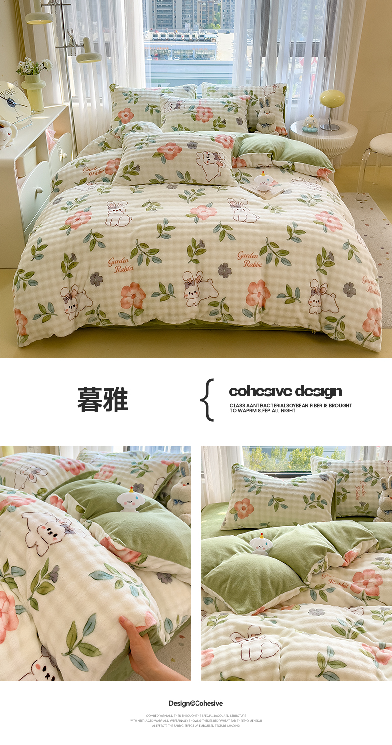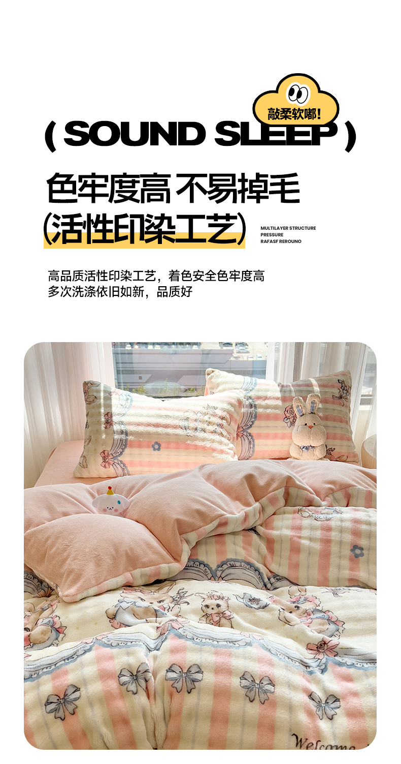 当前位置: 91家纺网 > 商品网购 > 床品套件 > 四件套 > 牛奶绒四件套 > 摩妮卡 2025新款小清新加厚260克牛奶绒泡泡绒四件套 洛丽兔