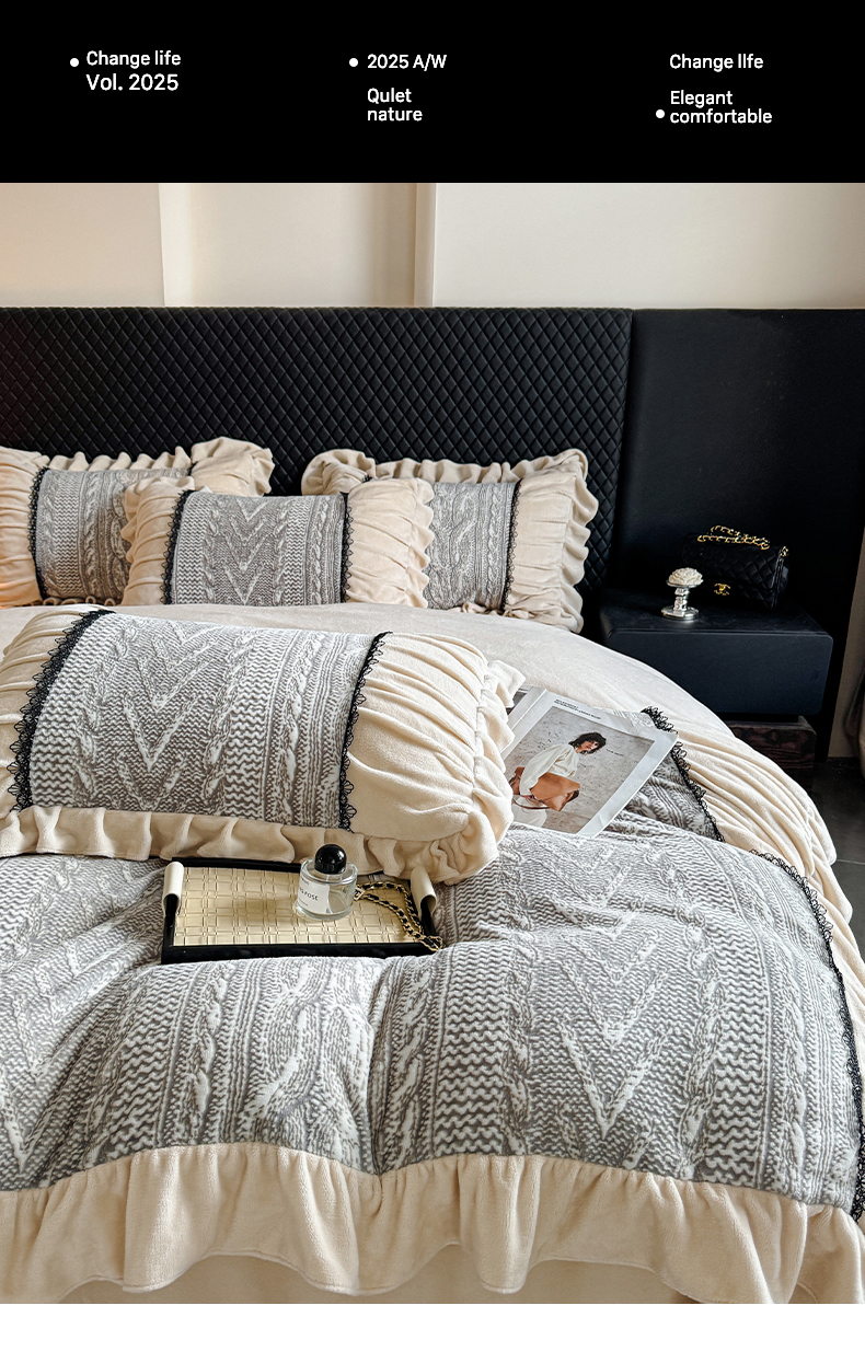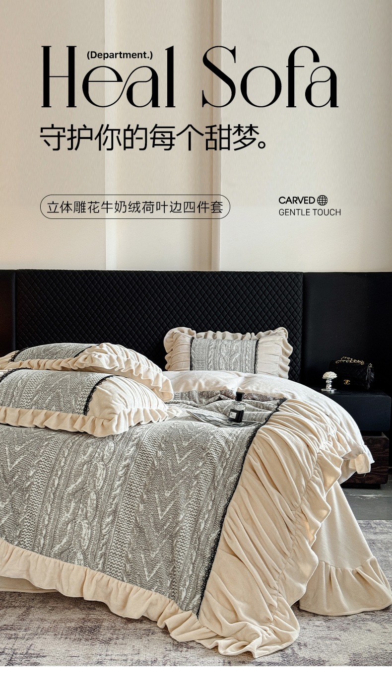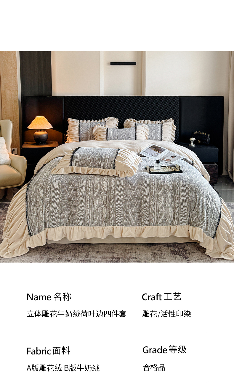 当前位置: 91家纺网 > 商品网购 > 床品套件 > 四件套 > 牛奶绒四件套 > 极简 2025新款立体雕花牛奶绒荷叶边四件套 巴黎-灰