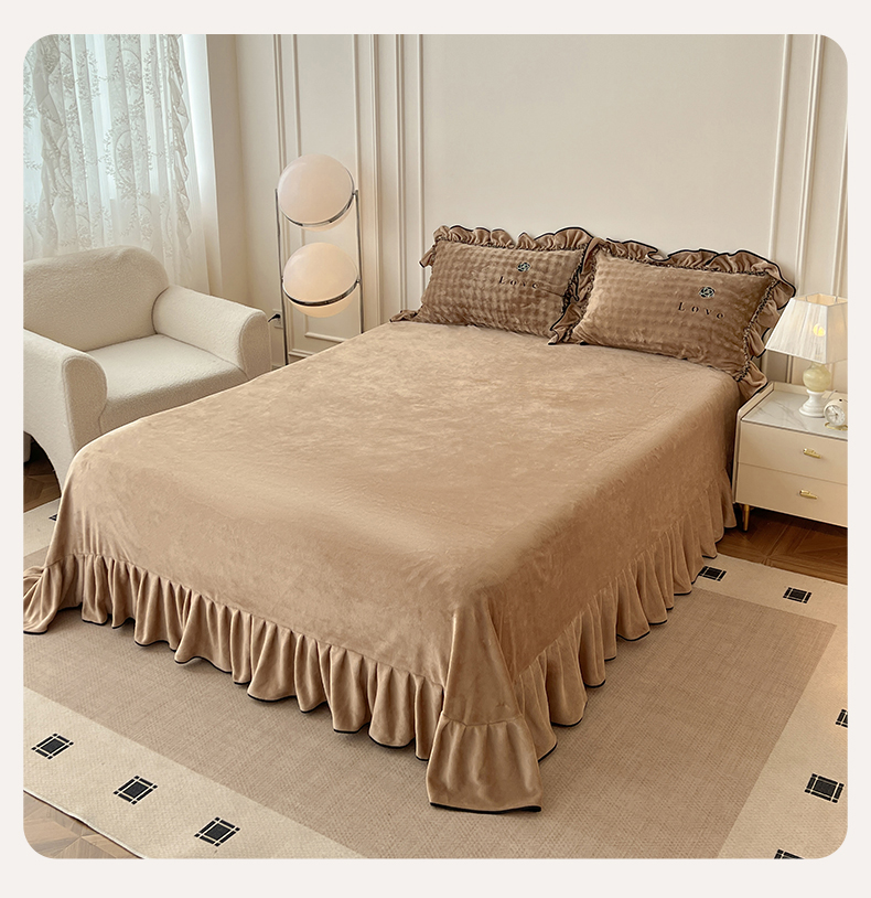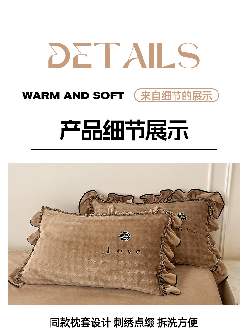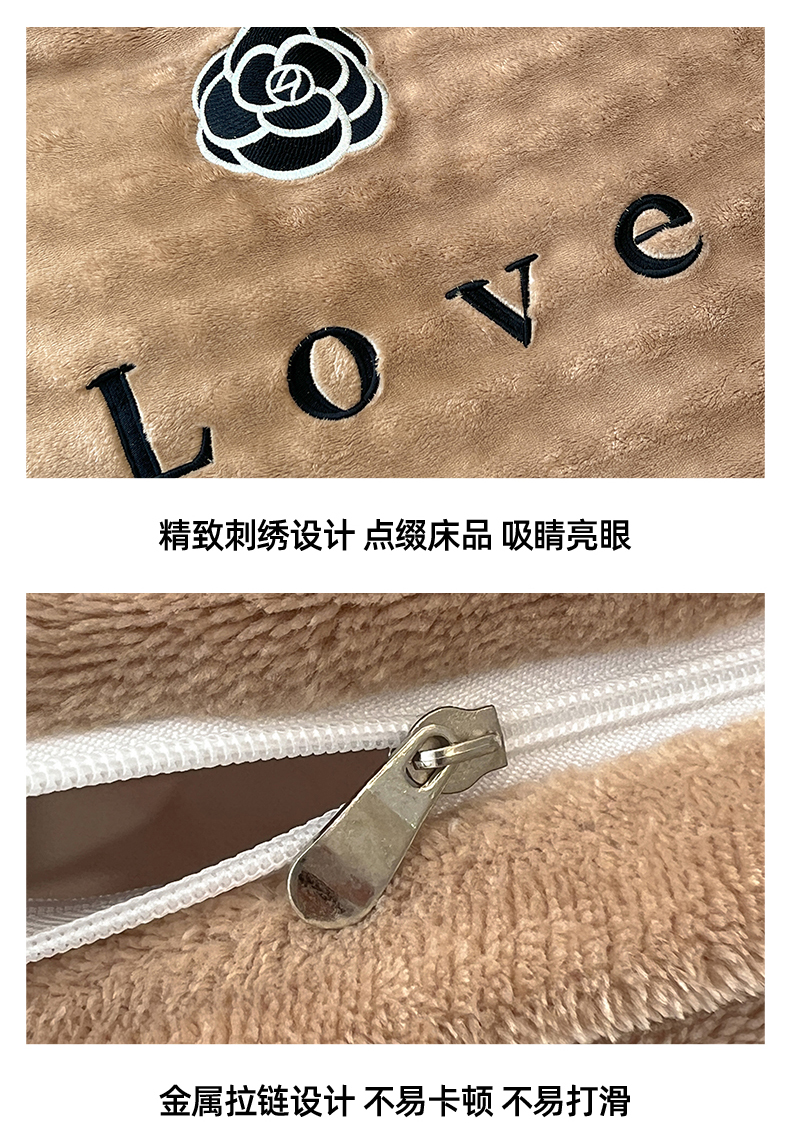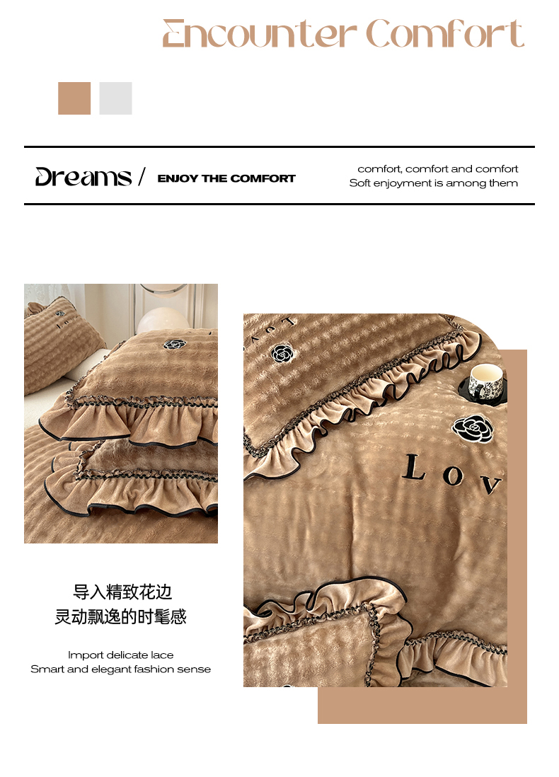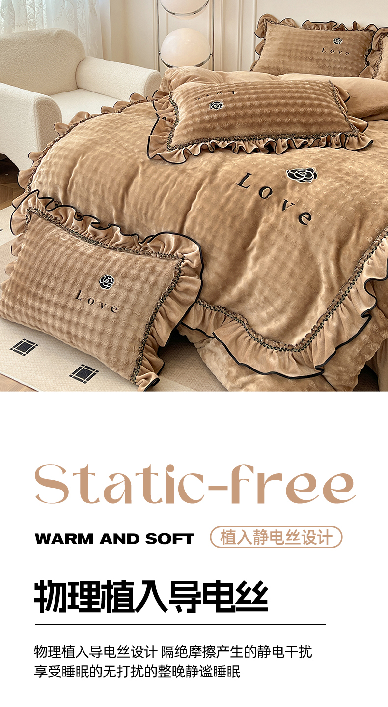 商品名称:言熙居家纺 2025新款牛奶绒绣花四件套 Love-卡其