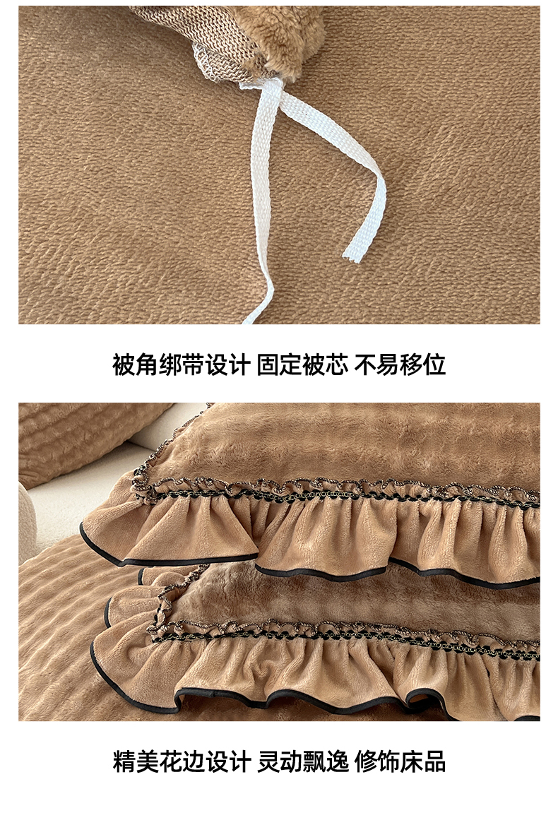 (总)言熙居家纺 2025新款A类兔毛绒韩版卡通花边四件套,蝴蝶结,幻蝶,墨枝,休闲一刻,映春,花眠