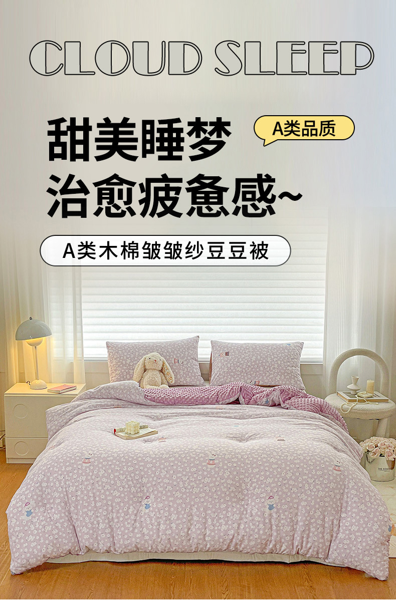 • 91家纺网 家纺一手货源 找家纺 丫丫家纺 2025新款云感木棉皱皱纱被子豆豆绒大豆被冬被被芯春秋豆豆被 米小熊