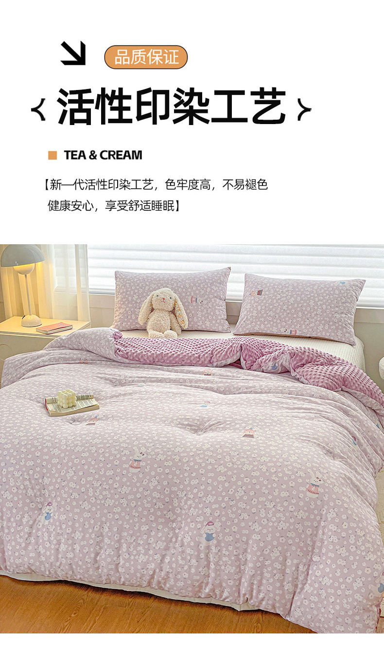 (总)丫丫家纺 2025学生季全棉高克重豆豆绒三四件套加厚保暖婴儿绒牛奶绒单被套单人双人被套加大号棉加绒三四件套 ,粉色浪漫,花团锦簇,机器人,拉嘟嘟,倾城之美,碎花熊兔,小新和他的蜡笔,追梦腊肠,紫色兔几,爱丽丝梦游,潘多拉小熊,兔兔茶话会, 糖纸童年