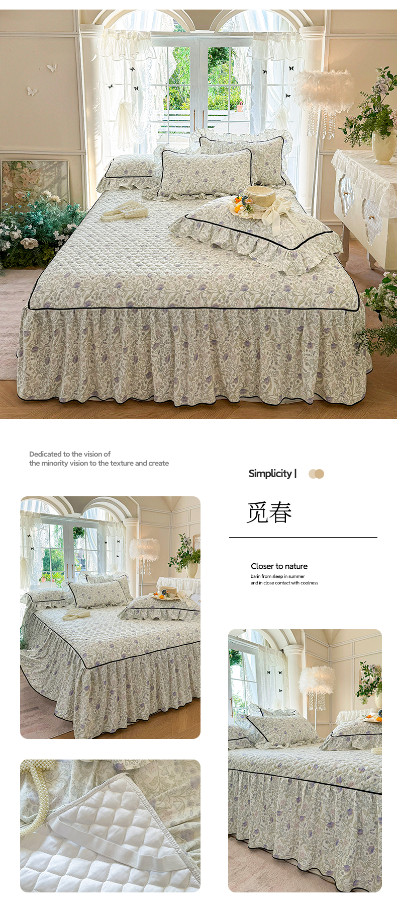 当前位置: 91家纺网 > 商品网购 > 床品套件 > 三件套 > 宜凡家纺 2025新款A类水洗珍珠棉夹棉床裙三件套 卡诺