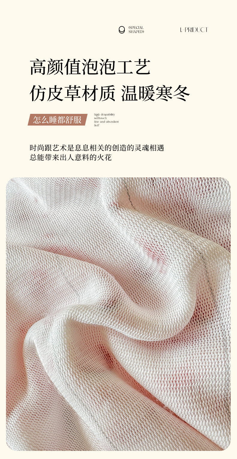 当前位置: 91家纺网 > 商品网购 > 床品套件 > 四件套 > 牛奶绒四件套 > 家贝爱 2025新款加厚牛奶绒泡泡兔毛绒四件套 泡泡绒-绽放