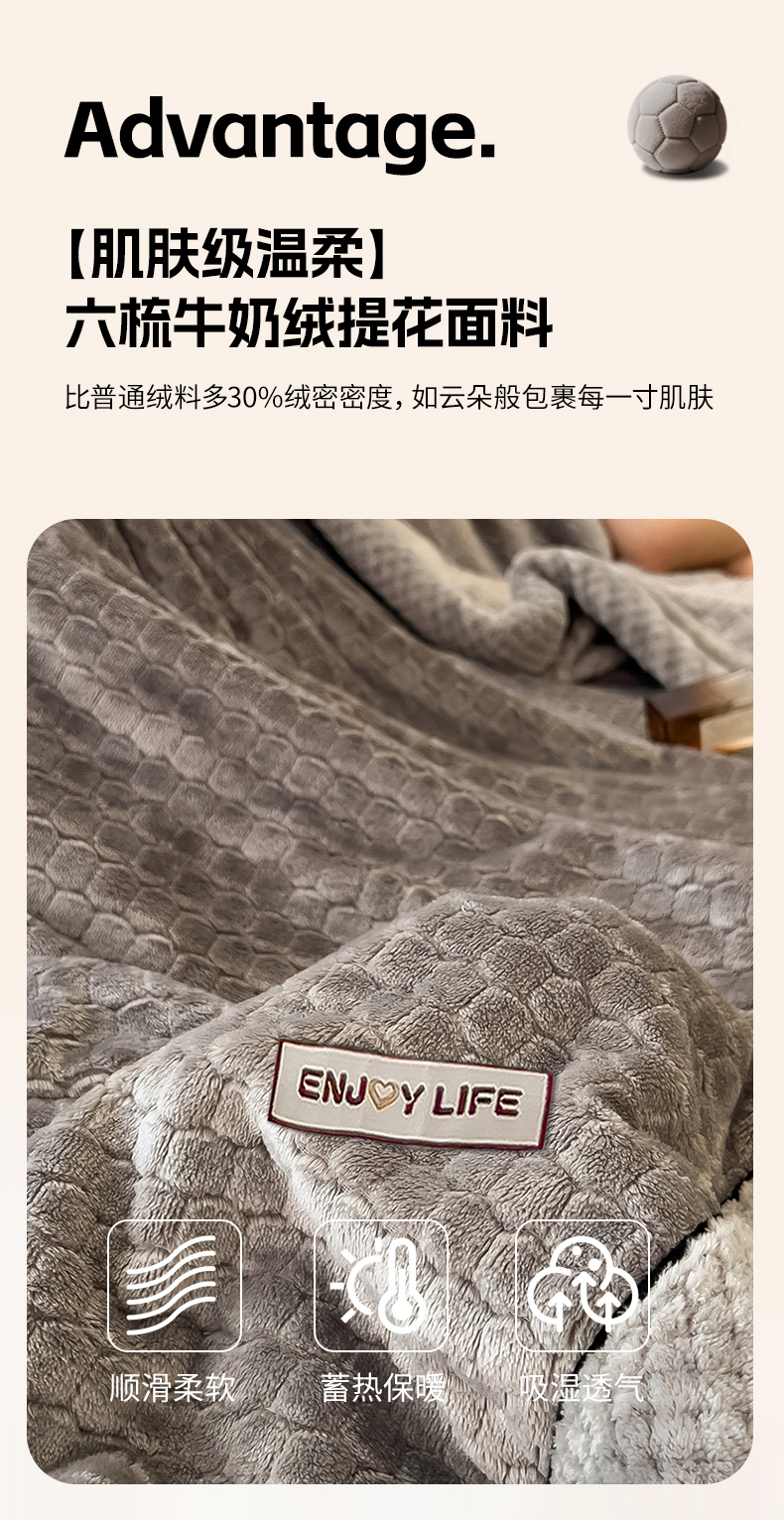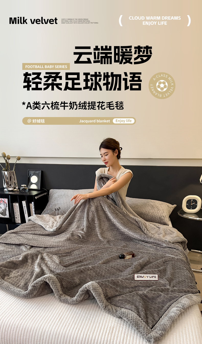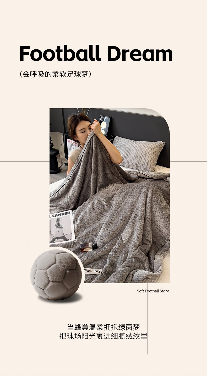 (总)世纪绒品 2025新款A类六梳牛奶绒提花足球宝贝毛毯,足球宝贝-气质灰,足球宝贝-蓝灰,足球宝贝-豆沙粉,足球宝贝-咖色,足球宝贝-米白,足球宝贝-云杉绿